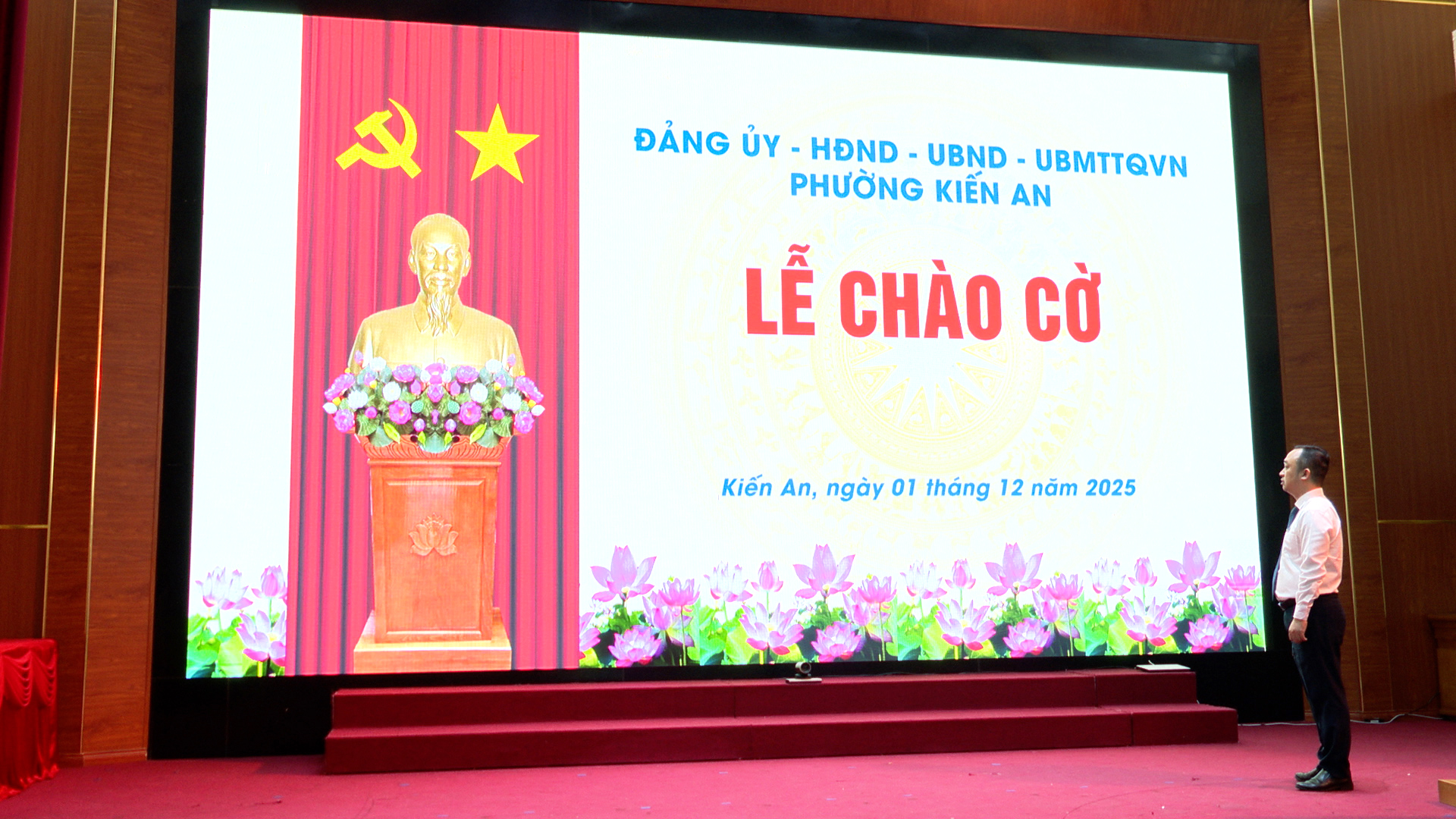 Sáng ngày 01/12, Đảng uỷ, HĐND, UBND, Uỷ ban MTTQ Việt Nam phường tổ chức Lễ chào cờ tháng 12. Tới dự có đồng chí Trần Quang Tuấn – Bí thư Đảng uỷ, Chủ tịch HĐND phường; đồng chí Nguyễn Thiện Kim – Phó Bí thư Thường trực Đảng uỷ phường. Tham dự có các đồng chí Ủy viên Ban Thường vụ Đảng uỷ phường; các đồng chí lãnh đạo HĐND, UBND, Ủy ban MTTQ Việt Nam phường; đảng viên, cán bộ, công chức, viên chức các phòng, ban, cơ quan, đơn vị, tổ chức chính trị - xã hội  phường.