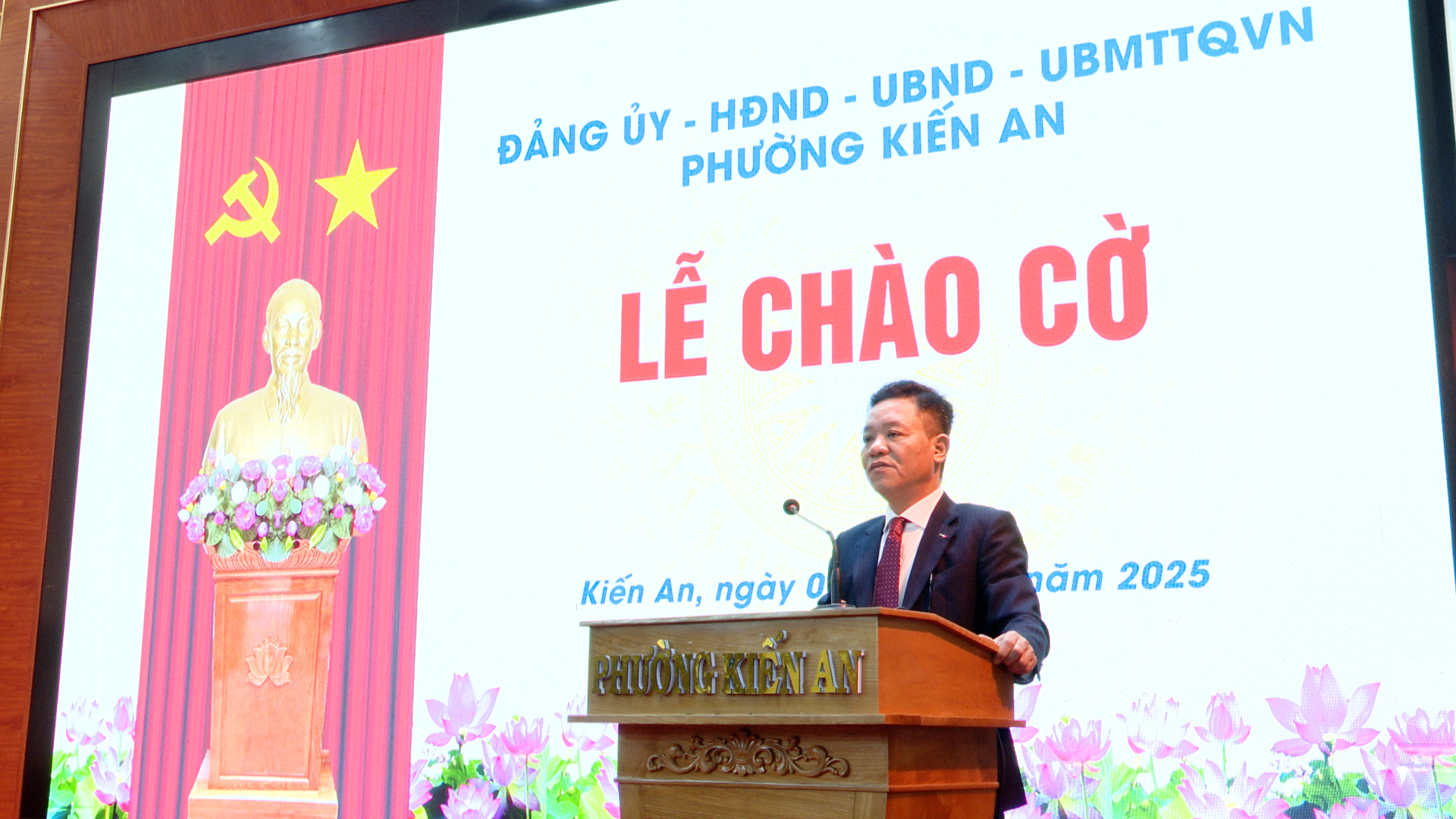 Tại lễ chào cờ, đồng chí Trần Quang Tuấn – Bí thư Đảng uỷ, Chủ tịch HĐND phường quán triệt những kết quả nổi bật của phường 11 tháng, triển khai nhiệm vụ tháng 12 năm 2025 và năm 2026.