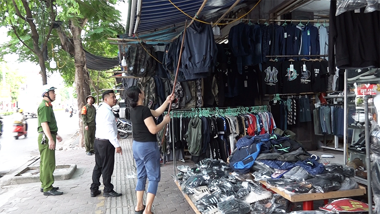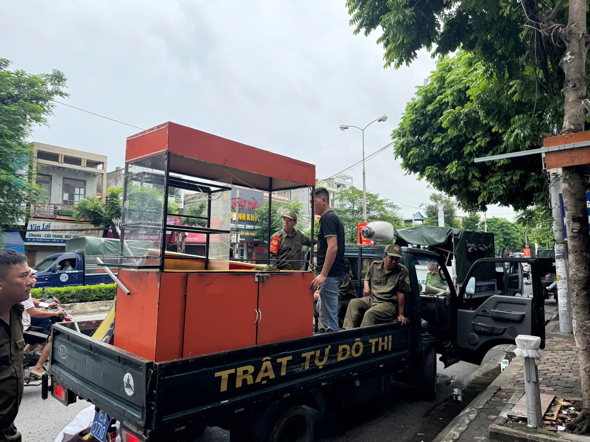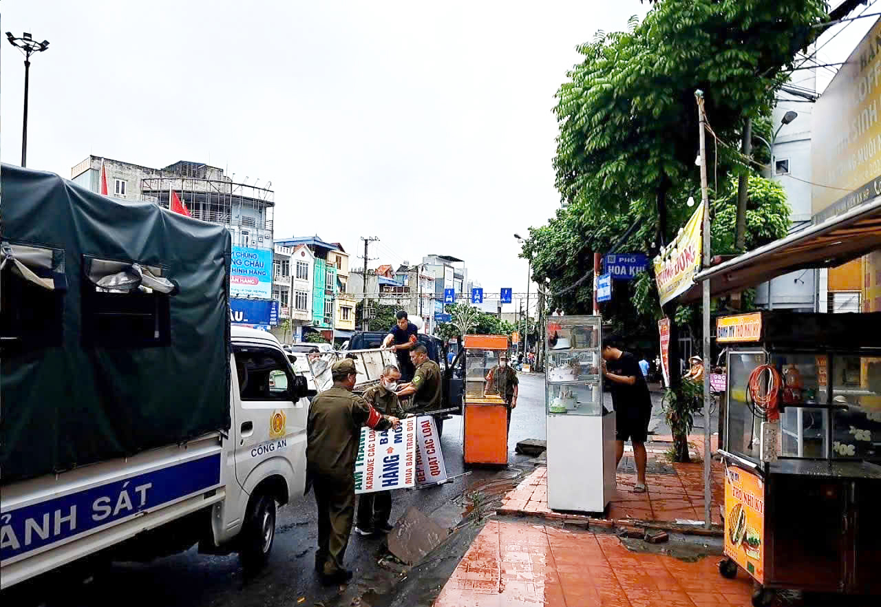Các lực lượng chức năng của phường ra quân lập lại trật tự đường hè tại một số tuyến đường, khu vực trên địa bàn phường