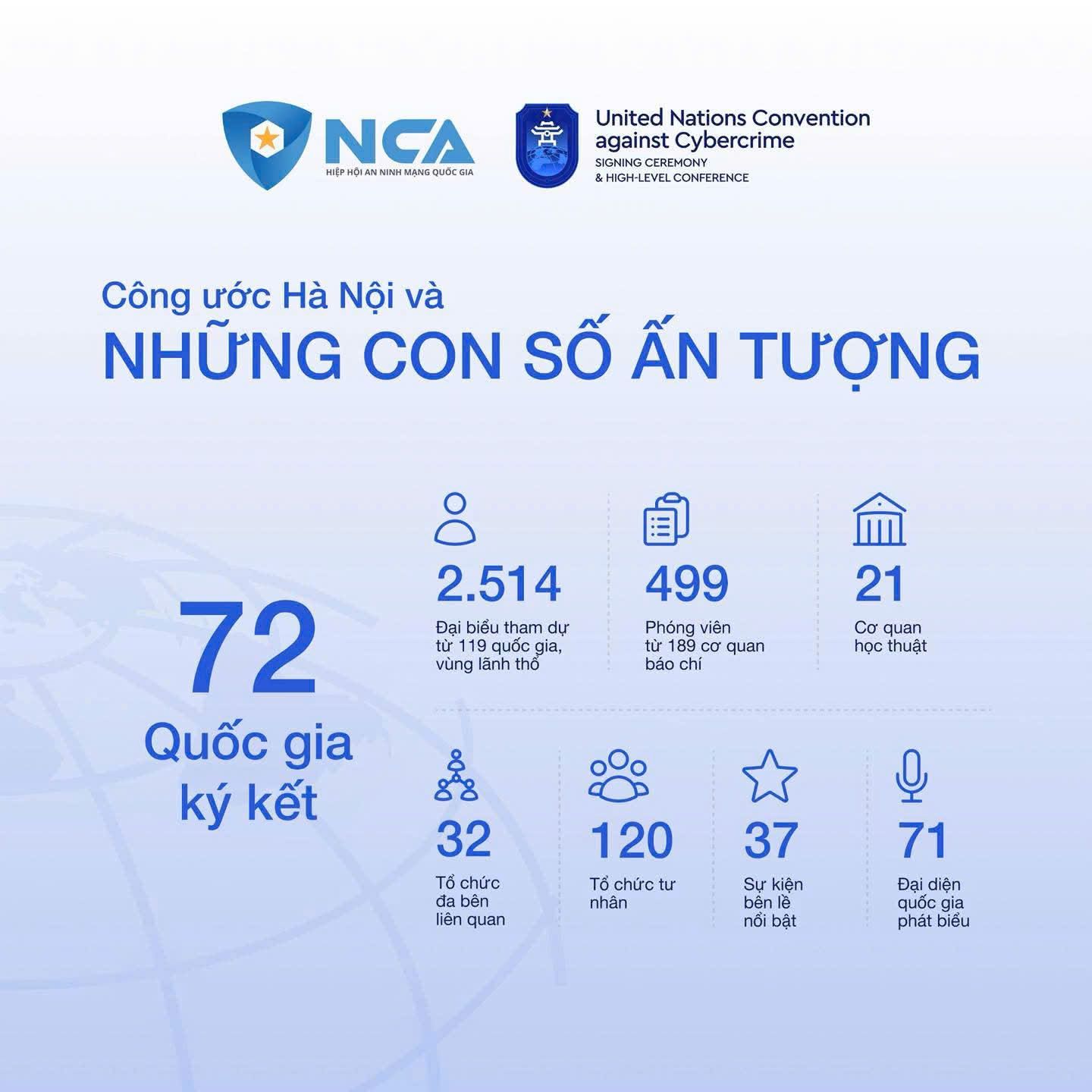 Dấu mốc quan trọng là việc Liên hợp quốc lựa chọn Hà Nội đăng cai Lễ mở ký và Hội nghị cấp cao về Công ước Liên hợp quốc về chống tội phạm mạng ngày 25-26/10/2025 - một sự kiện lịch sử khẳng định vai trò tiên phong của Việt Nam trong hợp tác đa phương. Công ước Hà Nội thiết lập cơ chế pháp lý toàn cầu với mạng lưới đầu mối liên lạc 24/7, giúp các quốc gia phối hợp khẩn cấp, rút ngắn thời gian xử lý và tăng hiệu quả truy vết tội phạm mạng.