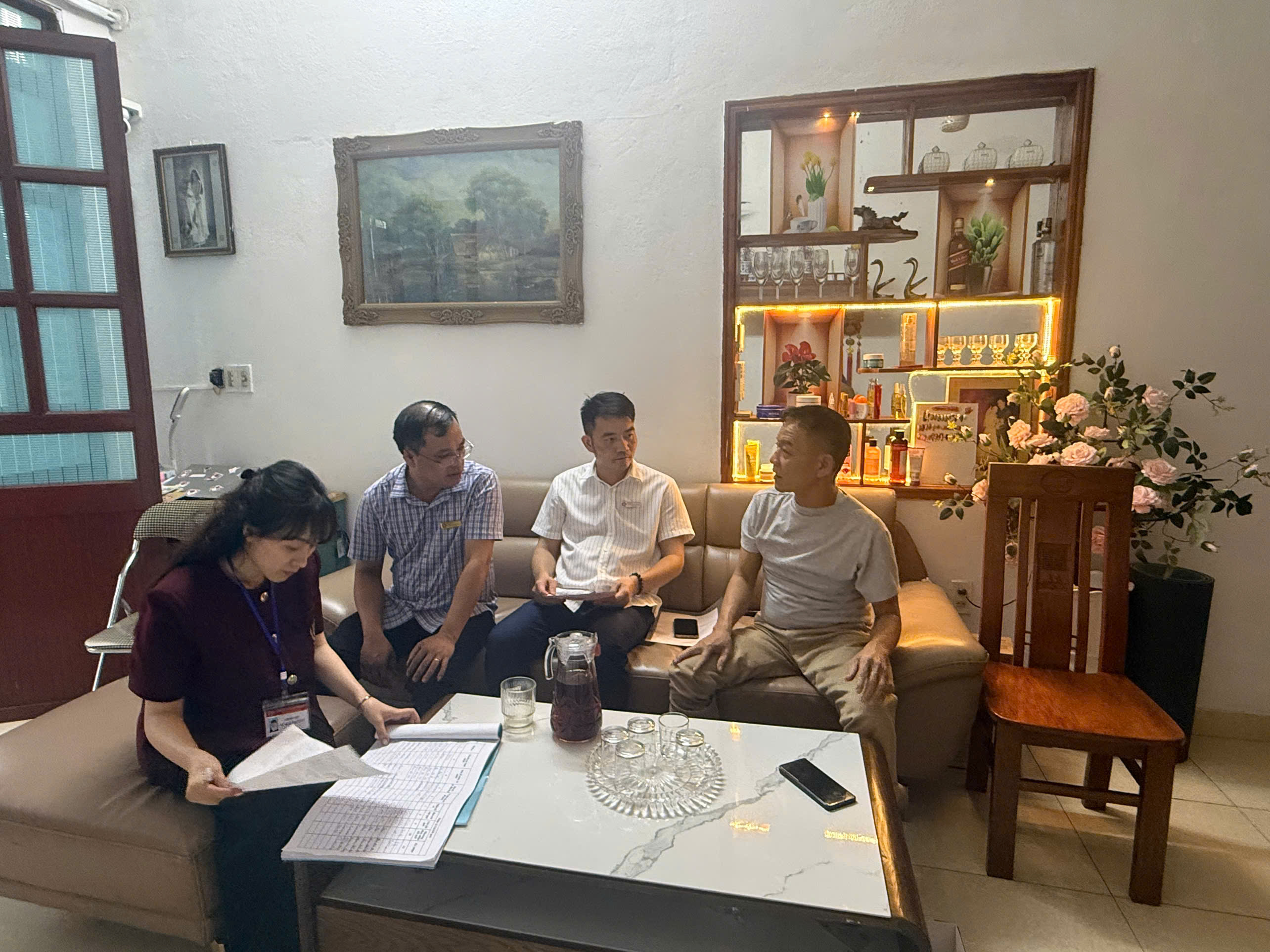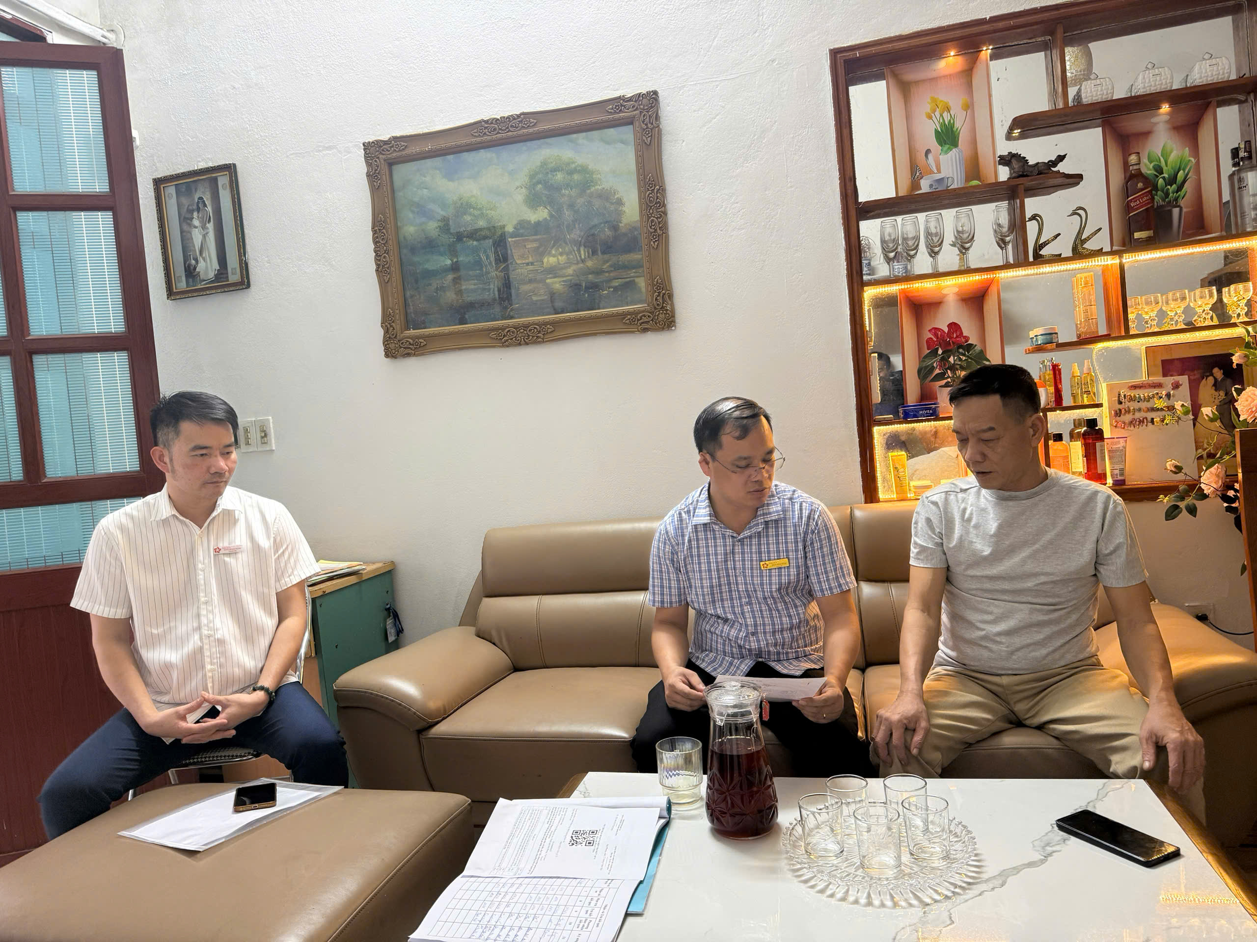 Đồng chí Đoàn Đình Dũng – Giám đốc Trung tâm Phục vụ hành chính công phường cùng chuyên viên Trung tâm tới trao Giấy chứng nhận quyền sử dụng đất, quyền sở hữu tài sản gắn liền với đất tại nhà cho ông Nguyễn Văn Quý
