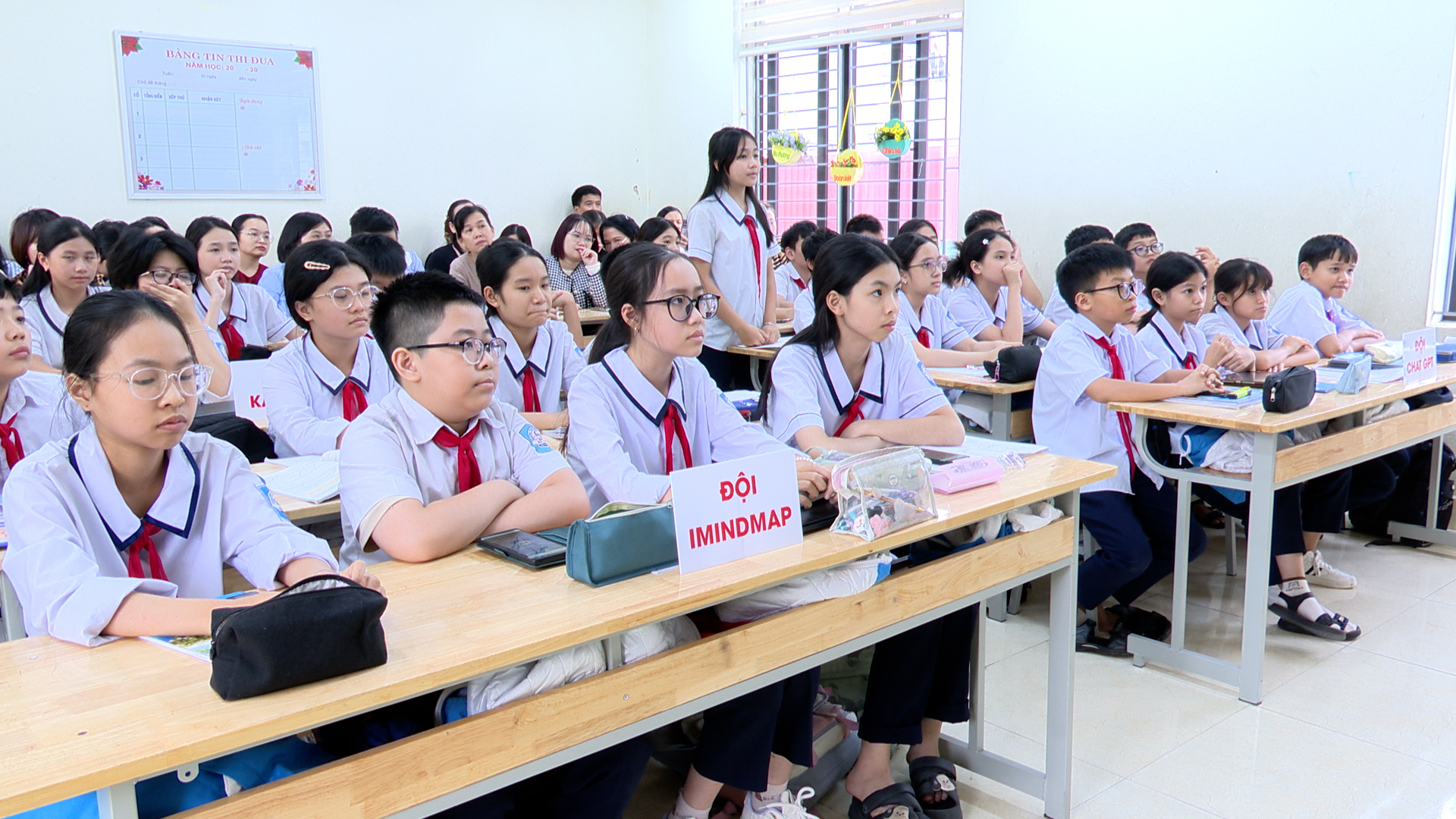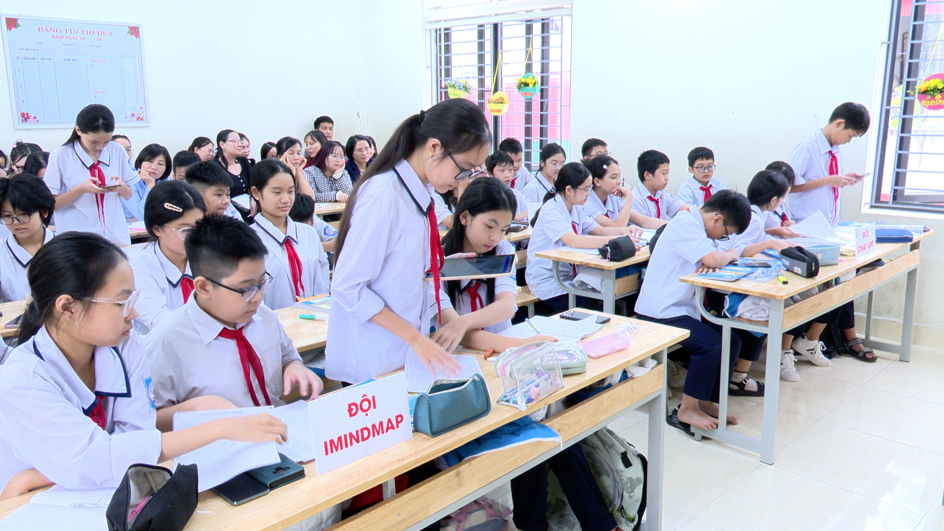 Chuyên đề do cô giáo Đỗ Khánh Linh (trường THCS Nam Hà) thực hiện với bài “Luyện tập: Trường hợp bằng nhau thứ nhất của hai tam giác”. Ngay từ phần khởi động, không khí lớp học trở nên sôi nổi khi học sinh tham gia trò chơi trắc nghiệm trực tuyến trên Kahoot để nhận biết các yếu tố tương ứng của hai tam giác bằng nhau. Các em sử dụng điện thoại thông minh để trả lời nhanh, kết quả được hiển thị trực tiếp trên màn hình, tạo hứng thú và tinh thần thi đua học tập. Tiếp đến ở hoạt động luyện tập, học sinh được chia nhóm sử dụng iMindMap, Xmind và ChatGPT để vẽ sơ đồ tư duy tổng hợp kiến thức về chủ đề “Hai tam giác bằng nhau”. Với sự hỗ trợ của công nghệ AI, các em phát huy khả năng tư duy hệ thống, sắp xếp nội dung logic, đồng thời rèn luyện kỹ năng trình bày, phản biện và hợp tác nhóm.