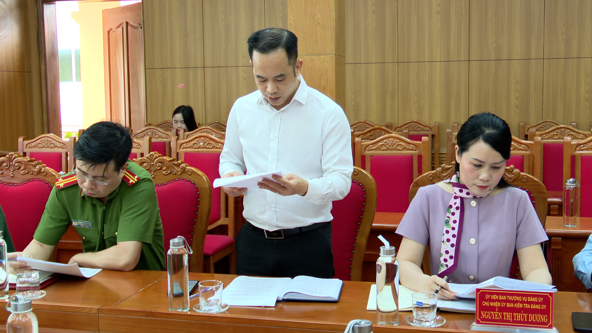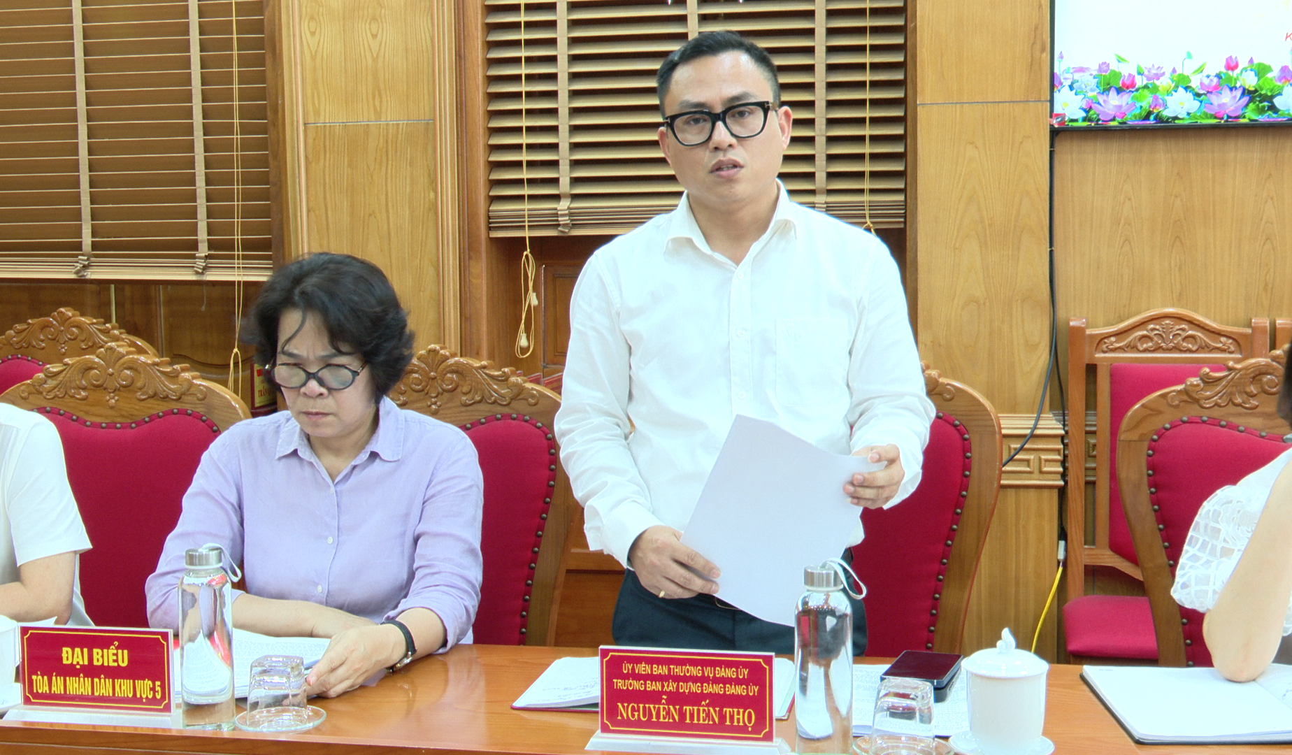 Đồng chí Lã Hồng Phương – Phó Chánh Văn phòng Đảng ủy phường báo cáo công tác nội chính, phòng chống tham nhũng, lãng phí, tiêu cực và cải cách tư pháp quý I năm 2026