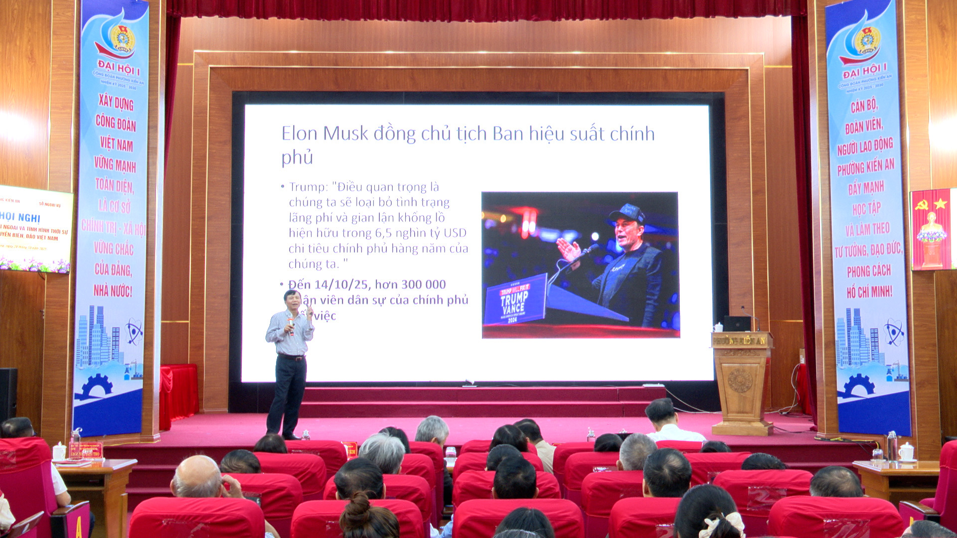 Tại Hội nghị, Phó Giáo sư, Tiến sĩ Đặng Đình Quý thông tin khái quát tình hình thế giới và khu vực trong 10 tháng đầu năm 2025, tác động của kinh tế toàn cầu đối với Việt Nam. Báo cáo viên cũng đã thông tin về tình hình Biển Đông, hoạt động đối ngoại của lãnh đạo Đảng và Nhà nước ta trong thời gian gần đây