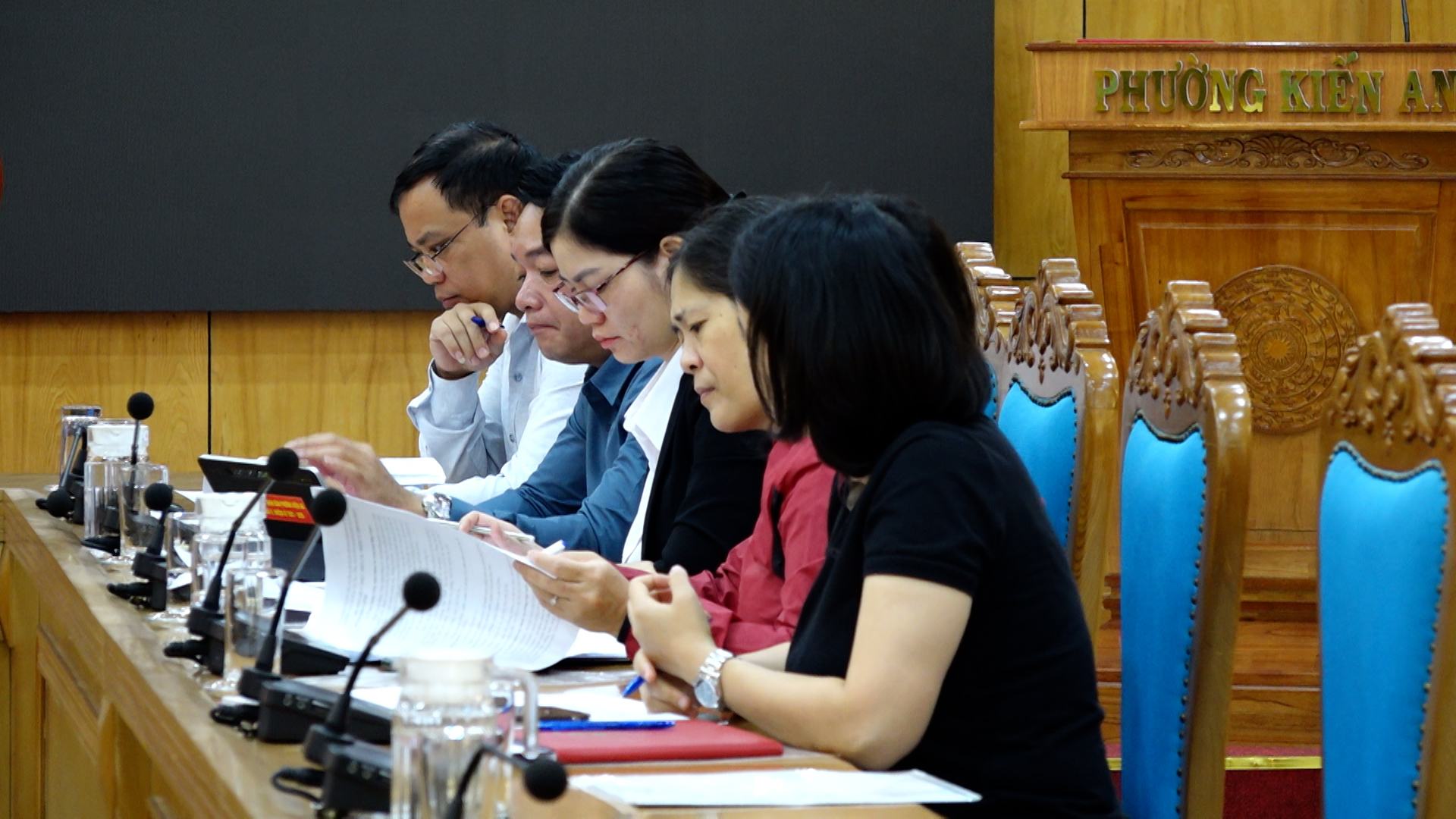 Đại diện Phòng Văn hóa – Xã hội phường trình bày Báo cáo tình hình triển khai, tổ chức thực hiện Kế hoạch số 65/KH-UBND, ngày 17/9/2025 của Ủy ban nhân dân phường Kiến An về Ứng dụng công nghệ thông tin và Chuyển đổi số trong các cơ quan nhà nước phường Kiến An 6 tháng cuối năm 2025