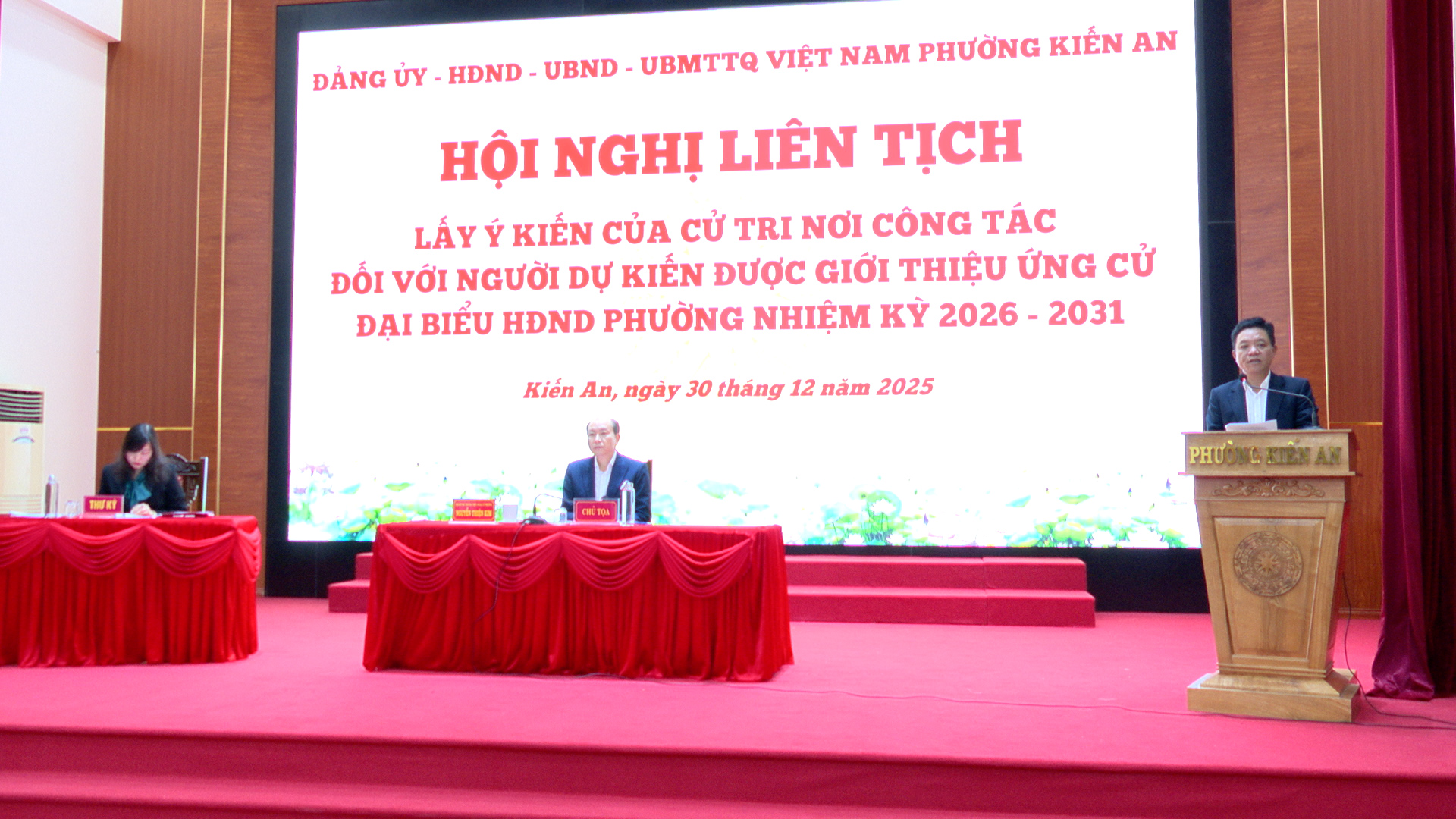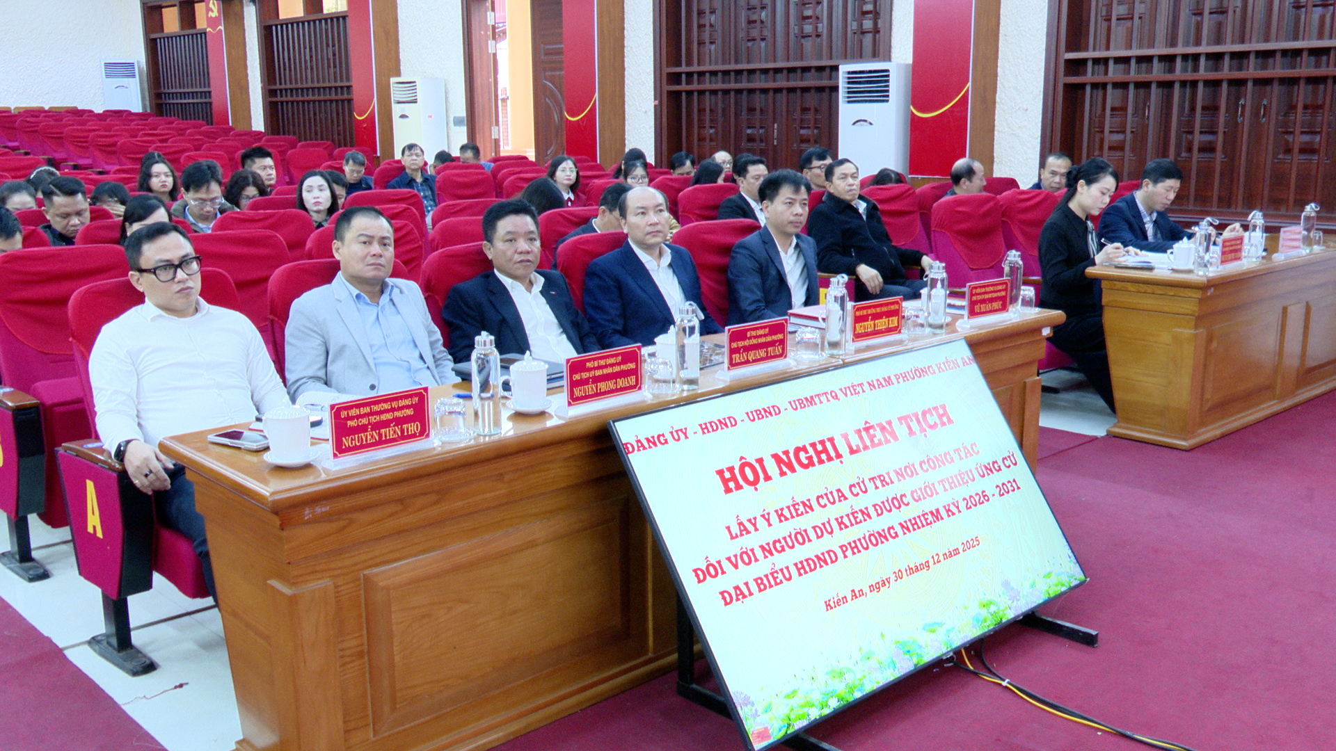 Sáng ngày 30/12, Đảng uỷ, Hội đồng nhân dân, Uỷ ban nhân dân, Uỷ ban Mặt trận Tổ quốc Việt Nam phường tổ chức Hội nghị liên tịch lấy ý kiến của cử tri nơi công tác đối với người dự kiến được giới thiệu ứng cử đại biểu Hội đồng nhân dân phường nhiệm kỳ 2026-2031.