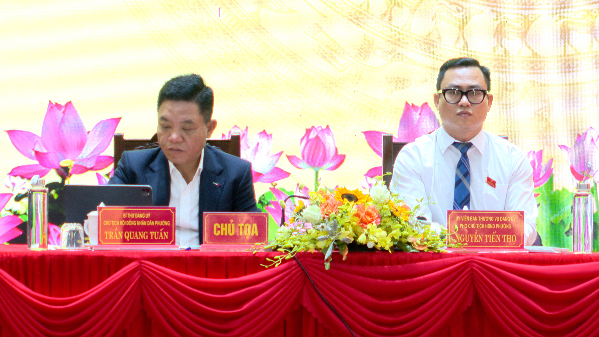 Đồng chí Trần Quang Tuấn – Bí thư Đảng uỷ Chủ tịch HĐND phường; đồng chí Nguyễn Tiến Thọ - Uỷ viên Ban Thường vụ Đảng uỷ, Phó Chủ tịch HĐND phường điều hành kỳ họp.