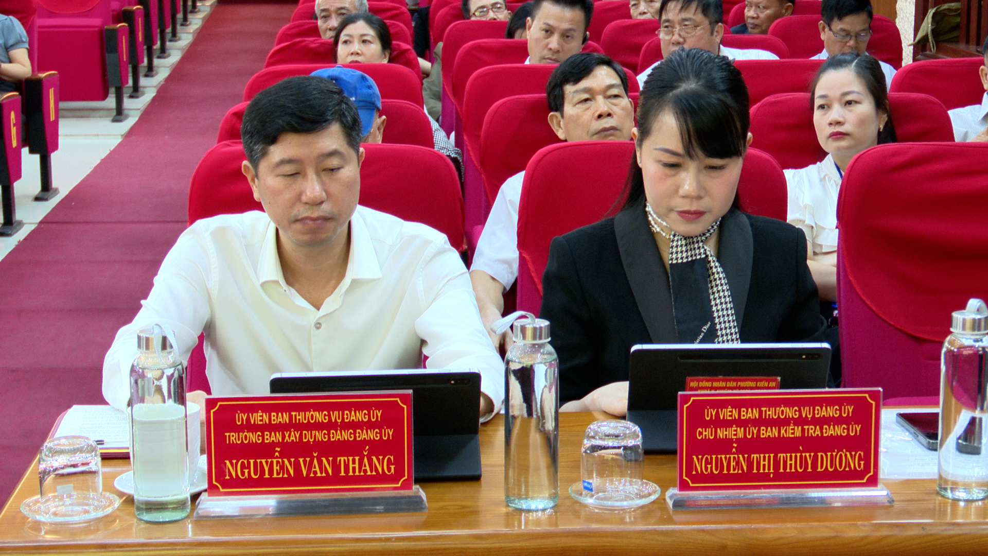 Đồng chí Trần Quang Tuấn – Bí thư Đảng uỷ, Chủ tịch HĐND phường; đồng chí Nguyễn Tiến Thọ - Uỷ viên Ban Thường vụ Đảng uỷ, Phó Chủ tịch HĐND phường Kiến An điều hành kỳ họp