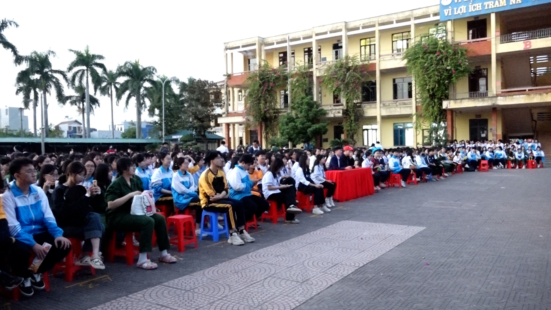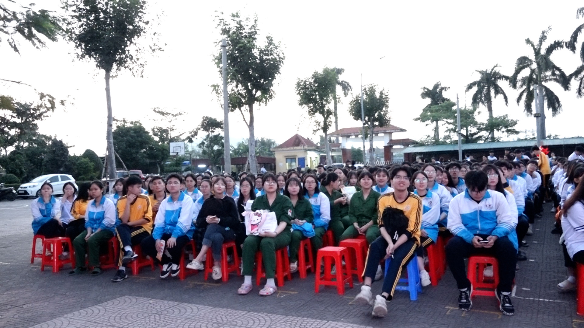 Cán bộ, giáo viên, nhân viên, phụ huynh và học sinh trường THPT Đồng Hoà xem phim “Mưa đỏ”