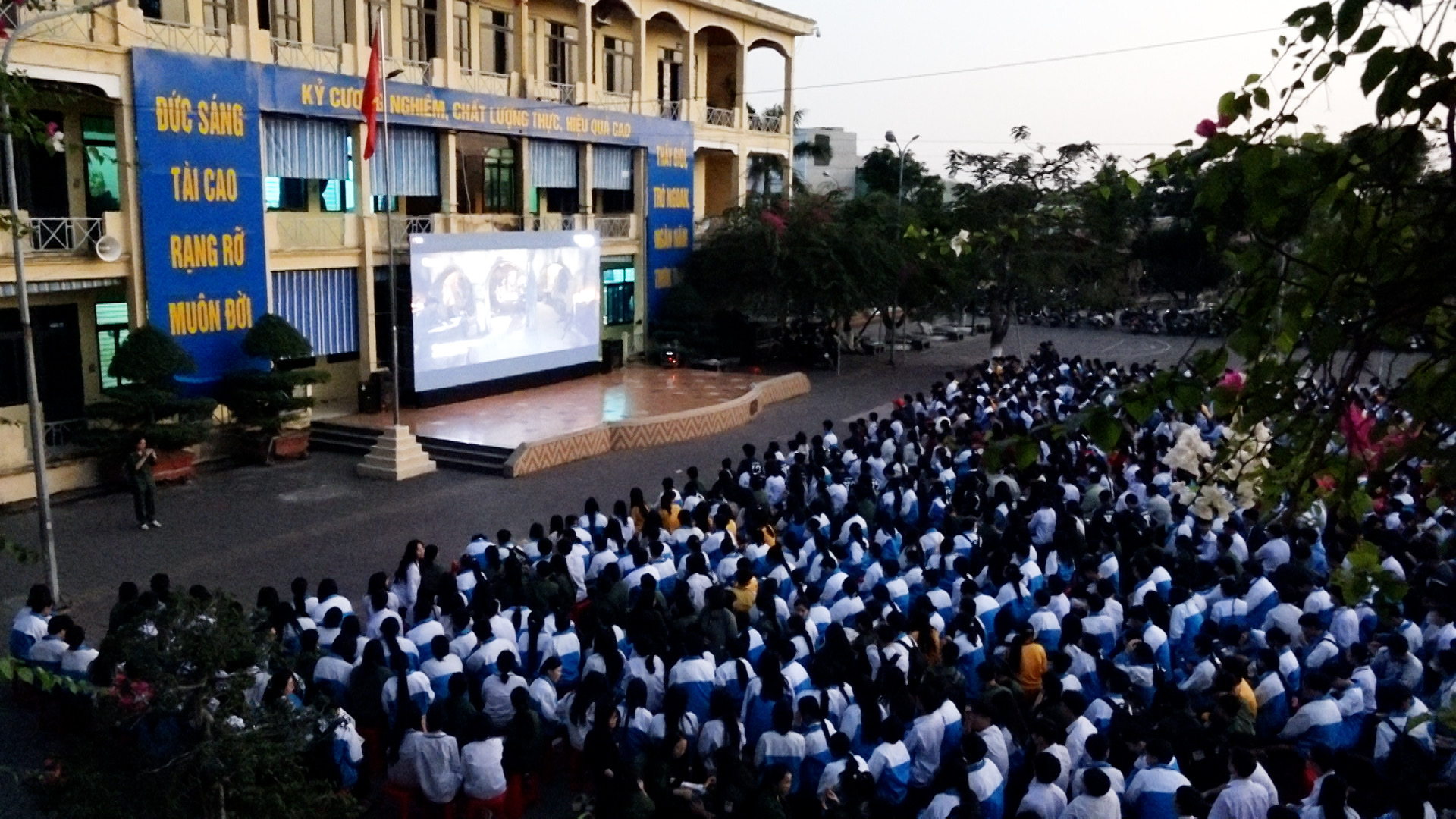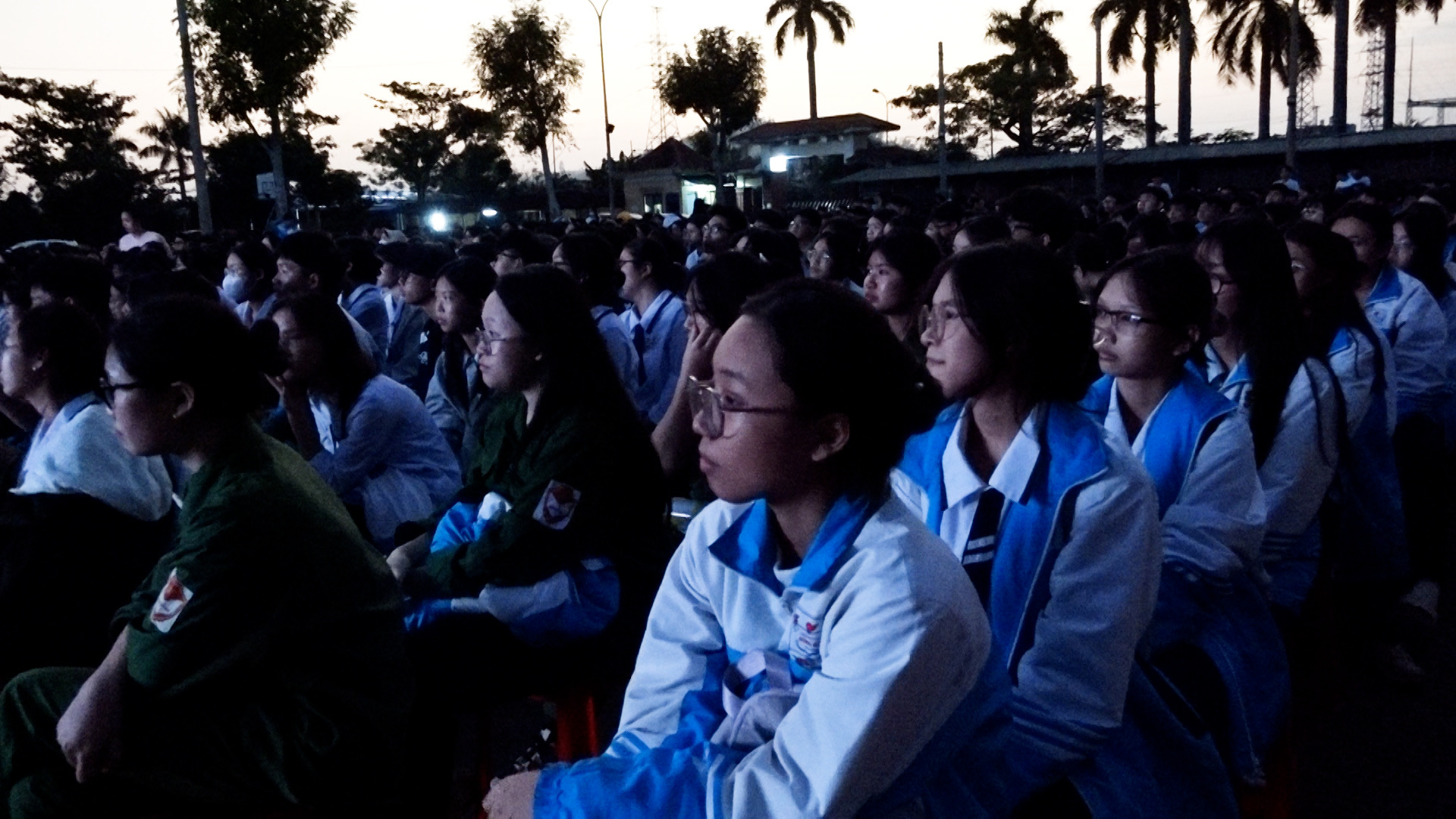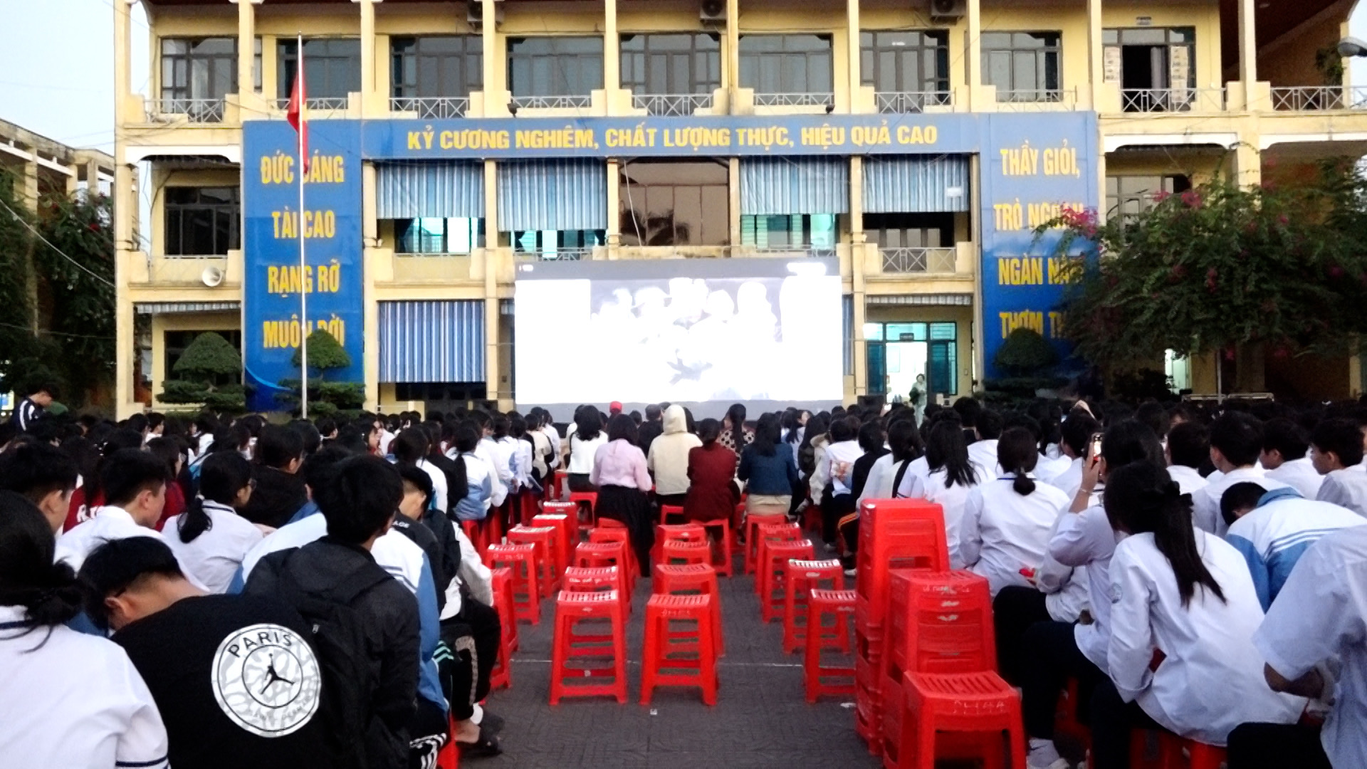 Quang cảnh buổi chiếu phim “Mưa đỏ” tại trường THPT Đồng Hoà