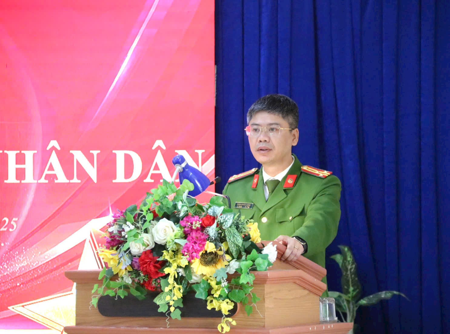 Đồng chí Thượng tá Đinh Phúc Long – Bí thư Đảng uỷ, Trưởng Công an phường phát biểu khai mạc Hội nghị