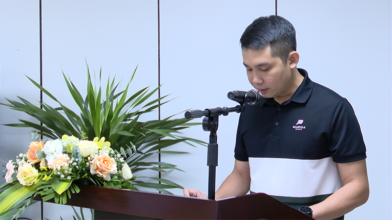 Đồng chí Trần Anh Tú – Chủ tịch Công đoàn Công ty Cổ phần May Hai báo cáo kết quả xây dựng mô hình “Sáng – Xanh – Sạch – Đẹp – An toàn – Văn minh”