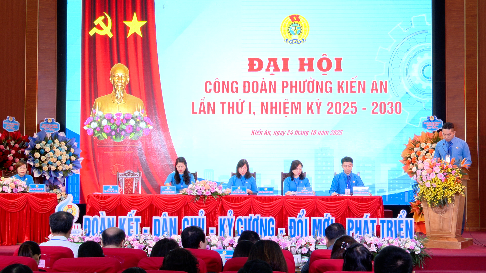 Sáng ngày 24/10/2025, Công đoàn phường tổ chức Đại hội lần thứ I, nhiệm kỳ 2025–2030. Tới dự có đồng chí Nguyễn Anh Tuân – Ủy viên Đoàn Chủ tịch Tổng Liên đoàn Lao động Việt Nam, Ủy viên Thành ủy, Phó Chủ tịch Ủy ban Mặt trận Tổ quốc Việt Nam thành phố, Chủ tịch Liên đoàn Lao động thành phố; thành viên Tổ Công tác số 01 của Liên đoàn Lao động thành phố chỉ đạo Đại hội; đại diện các bộ phận, đơn vị thuộc Liên đoàn Lao đồng thành phố. Đại biểu phường có đồng chí Trần Quang Tuấn – Bí thư Đảng uỷ, Chủ tịch HĐND phường; đồng chí Nguyễn Phong Doanh – Phó Bí thư Đảng uỷ, Chủ tịch UBND phường; đồng chí Nguyễn Thiện Kim – Phó Bí thư Thường trực Đảng uỷ phường. Cùng dự có các đồng chí Uỷ viên Ban Thường vụ Đảng uỷ phường; các tổ chức chính trị - xã hội phường; lãnh đạo các phòng, ban, đơn vị thuộc phường; các đồng chí nguyên lãnh đạo Công đoàn Kiến An qua các thời kỳ; cùng 150 đại biểu chính thức đại diện cho 5.858 đoàn viên công đoàn trên địa bàn phường.