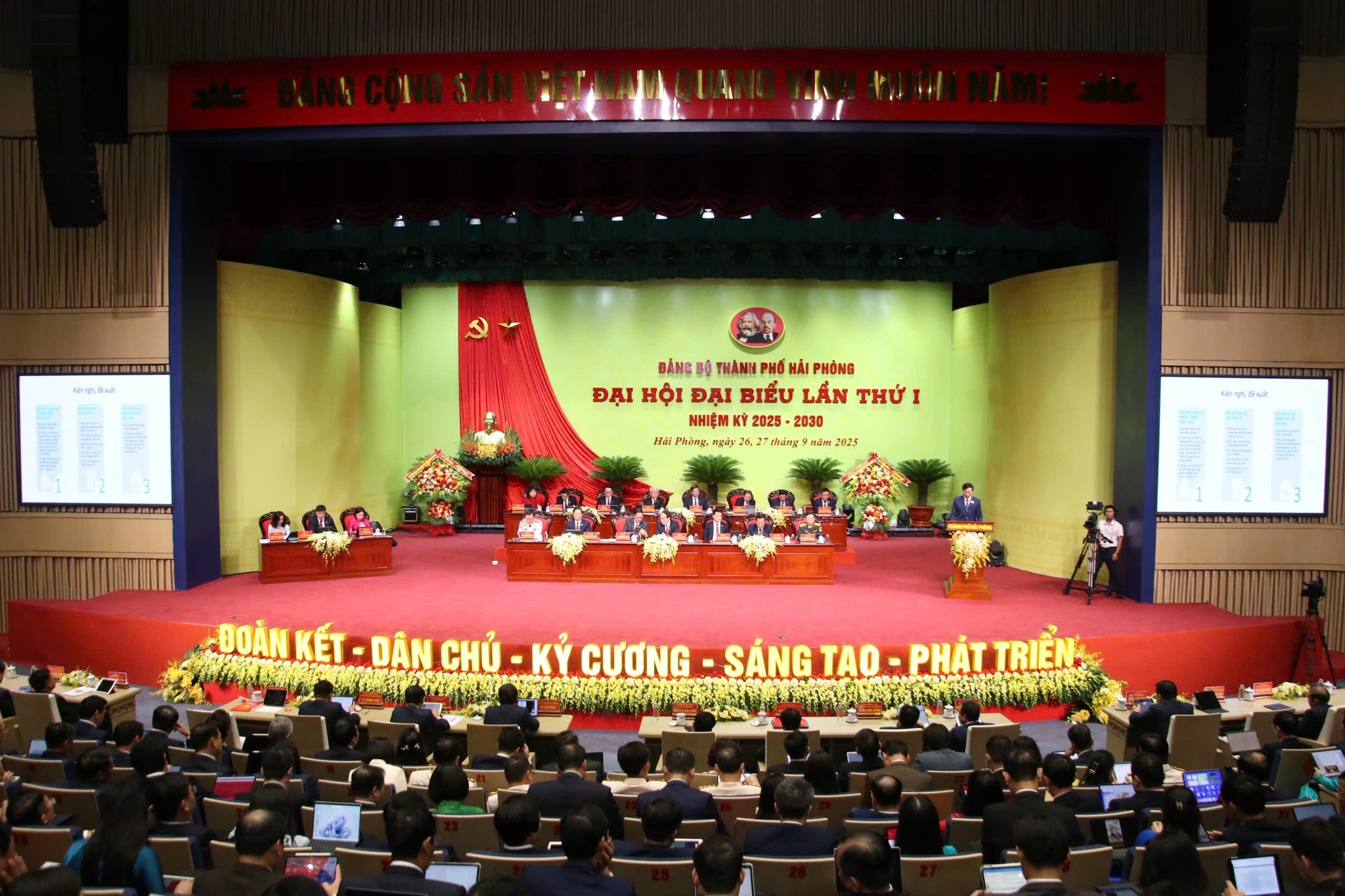 Chiều 26/9, Đại hội đại biểu Đảng bộ TP Hải Phòng lần thứ I, nhiệm kỳ 2025–2030 bước vào phiên làm việc thứ hai, nghe Báo cáo thẩm tra tư cách đại biểu, tiến hành tham luận tại Hội trường và thông qua các Báo cáo quan trọng.