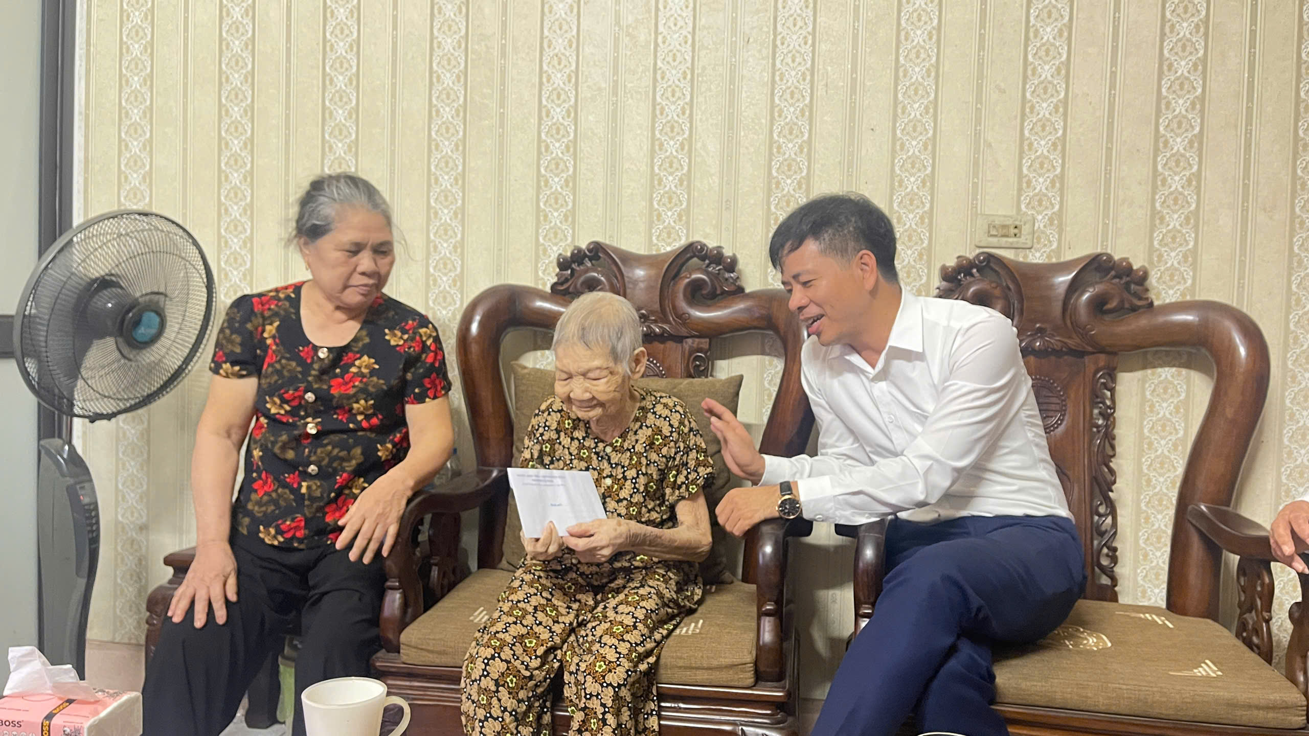 Trong dịp này, có 20 cụ cao tuổi được tặng quà, trong đó nhiều cụ đã trên 100 tuổi như: cụ Đồng Xuân Tuấn (103 tuổi, Tổ dân phố Đồng Hòa 10), cụ Phạm Thị Hợi (101 tuổi, Tổ dân phố Trần Thành Ngọ 8), cụ Bùi Thị Văn (101 tuổi, Tổ dân phố Đống Khê 2), cụ Nguyễn Thị Thêm (102 tuổi, Tổ dân phố Trữ Khê 3).