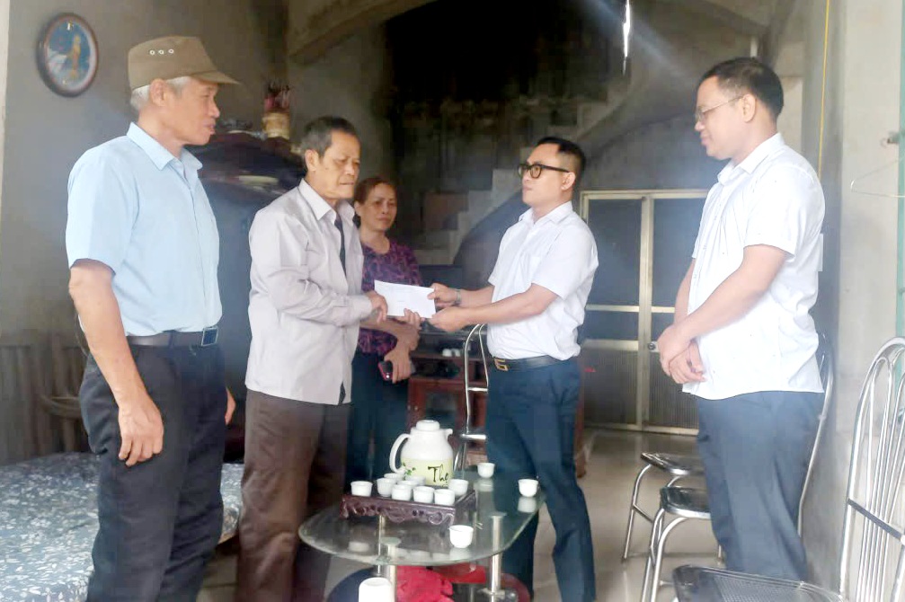 Đồng chí Vũ Xuân Phúc – Uỷ viên Ban Thường vụ Đảng uỷ, Chủ tịch Uỷ ban MTTQ Việt Nam phường tặng quà cụ Đồng Xuân Tuấn (103 tuổi, Tổ dân phố