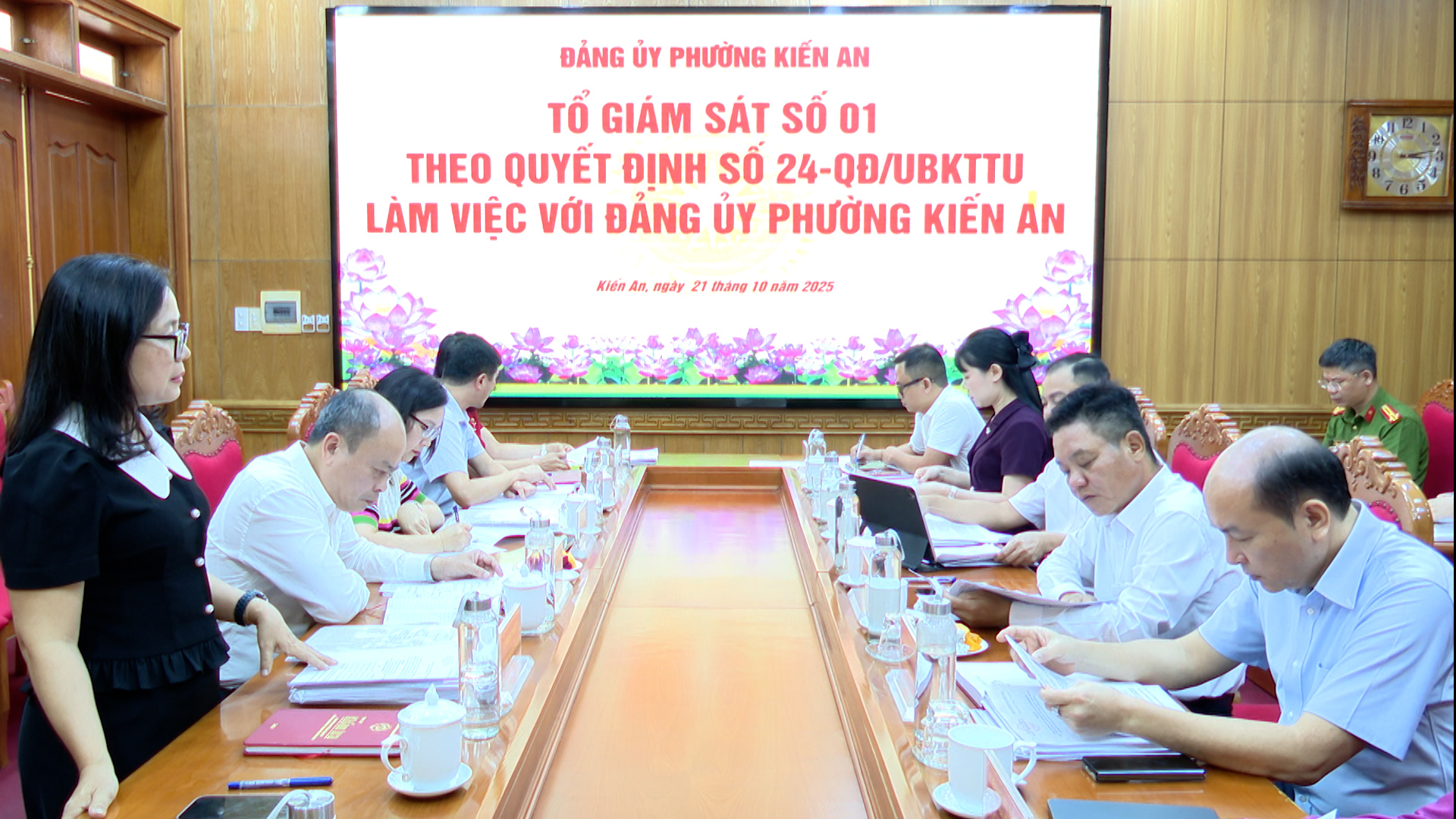 Tổ Giám sát số 01 theo Quyết định số 24-QĐ/UBKTTU, ngày 30/7/2025 của Ủy ban Kiểm tra Thành ủy làm việc với Đảng uỷ phường Kiến An về tình hình hoạt động của bộ máy chính trị và chính quyền địa phương 2 cấp