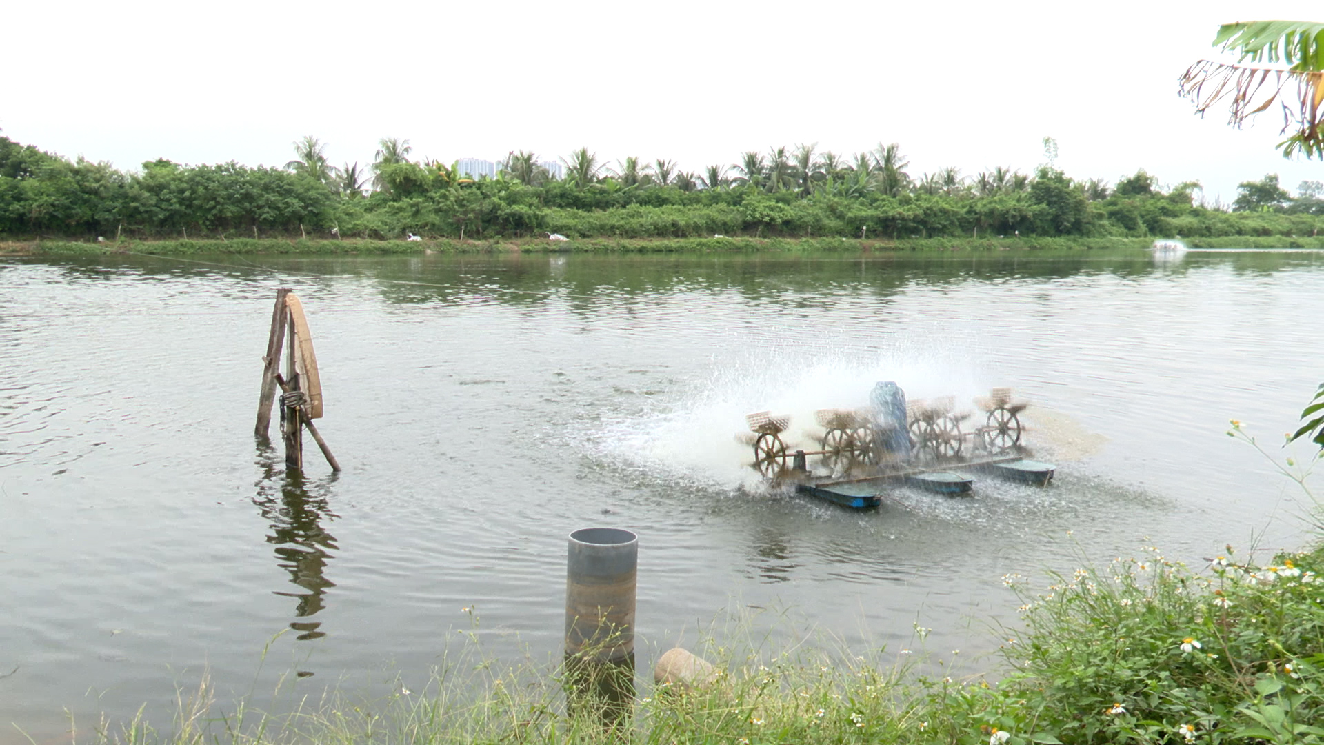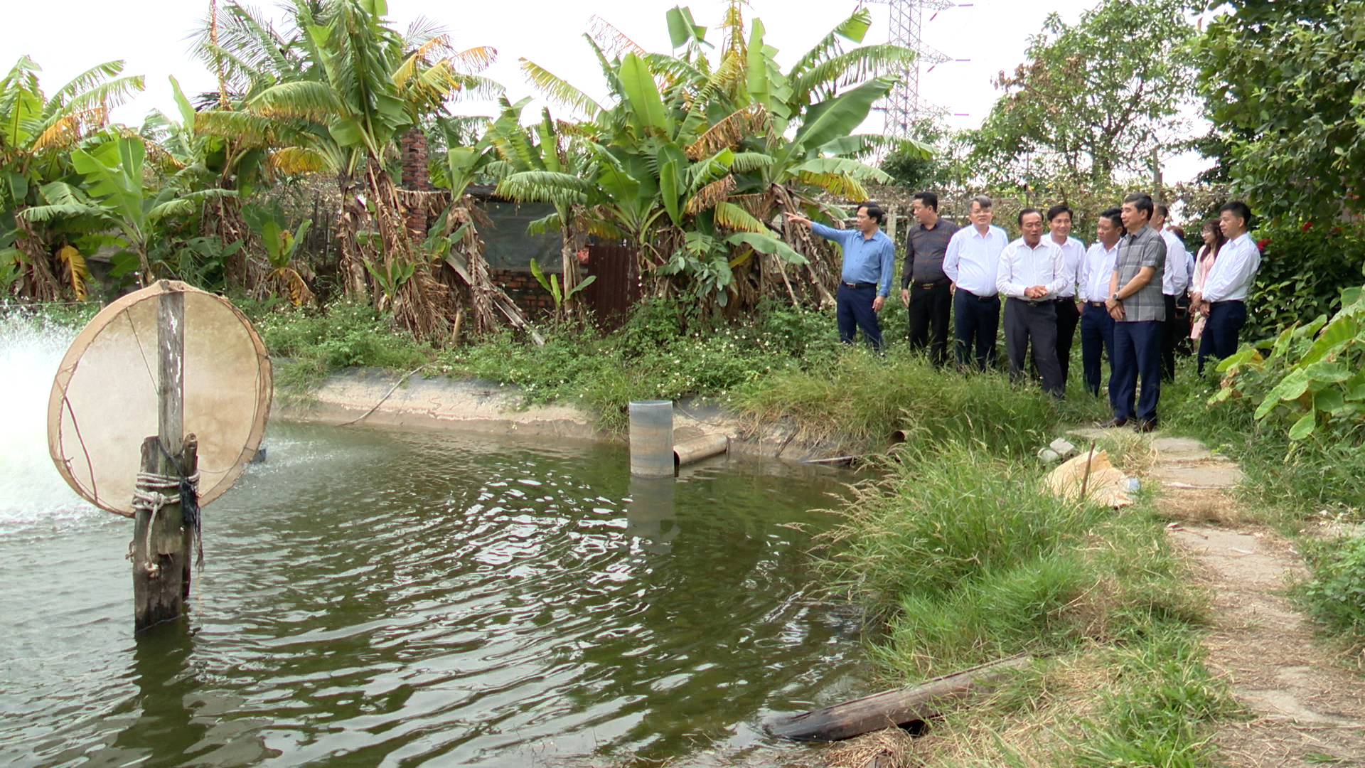 Đoàn công tác của thành phố và các đồng chí lãnh đạo phường thăm mô hình sản xuất nuôi tôm càng xanh khu vực cống Mỹ Khê và Công ty Cổ phần chế biến thực phẩm xanh Vinh Phát