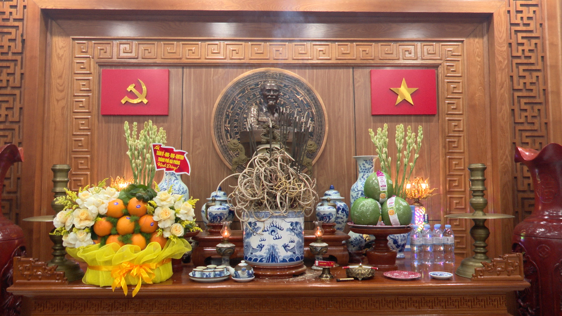 Đoàn công tác của thành phố và các đồng chí lãnh đạo phường đã thành kính dâng hương tại Phòng thờ Bác