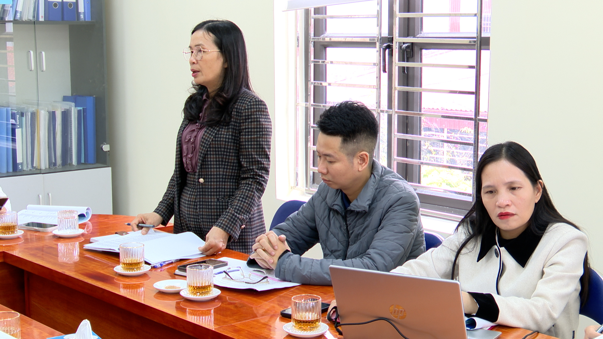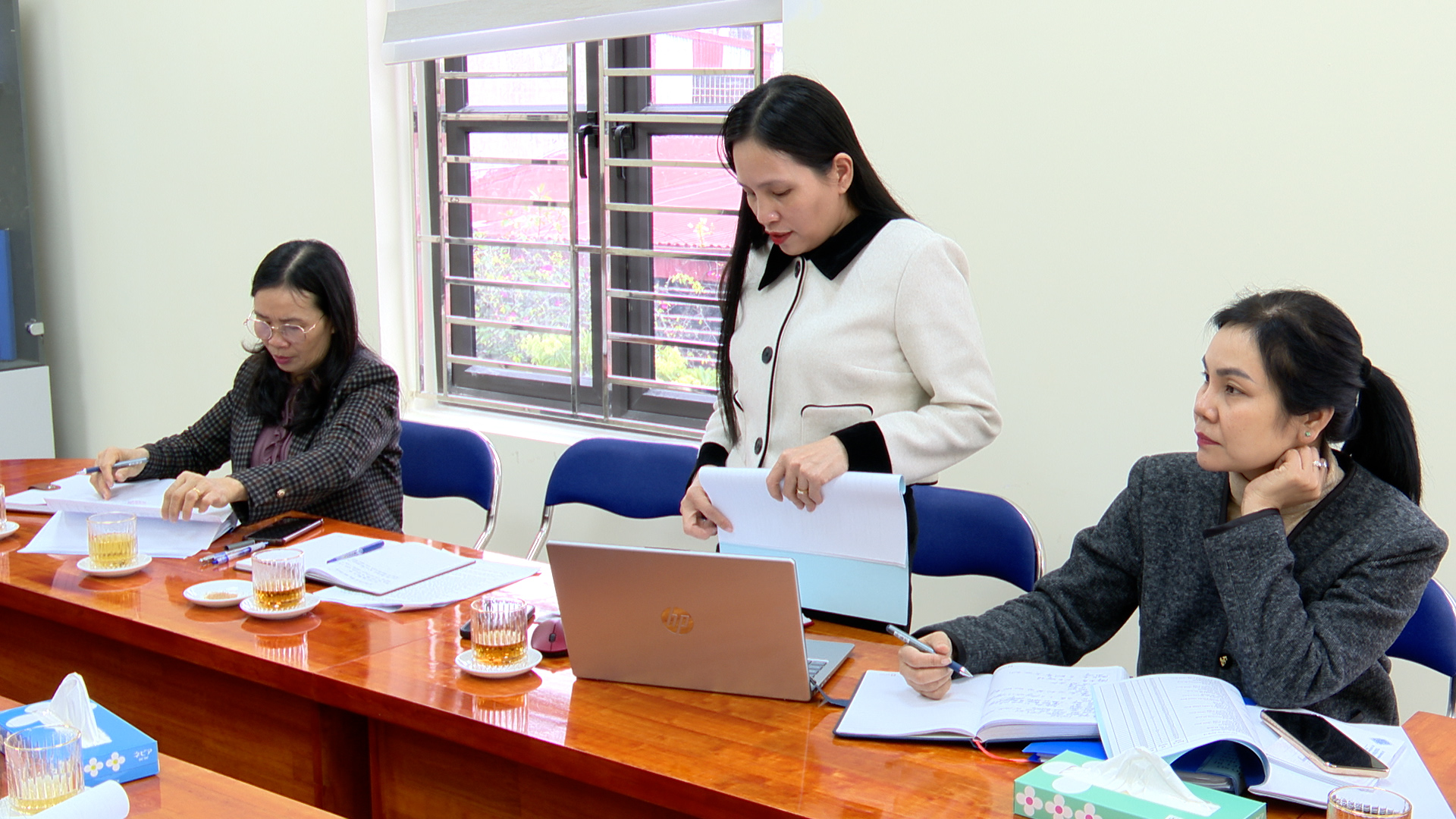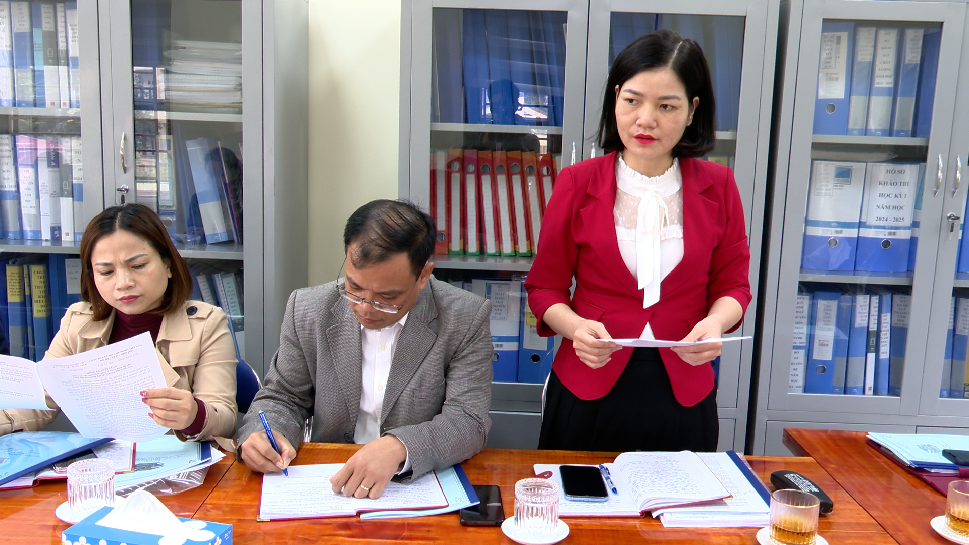 Đồng chí Nguyễn Thị Liên – Bí thư Chi bộ, Hiệu trưởng trường THCS Bắc Sơn báo cáo tình hình quản lý, sử dụng tài sản công và trang thiết bị dạy học từ năm học 2024–2025 đến năm học 2025–2026