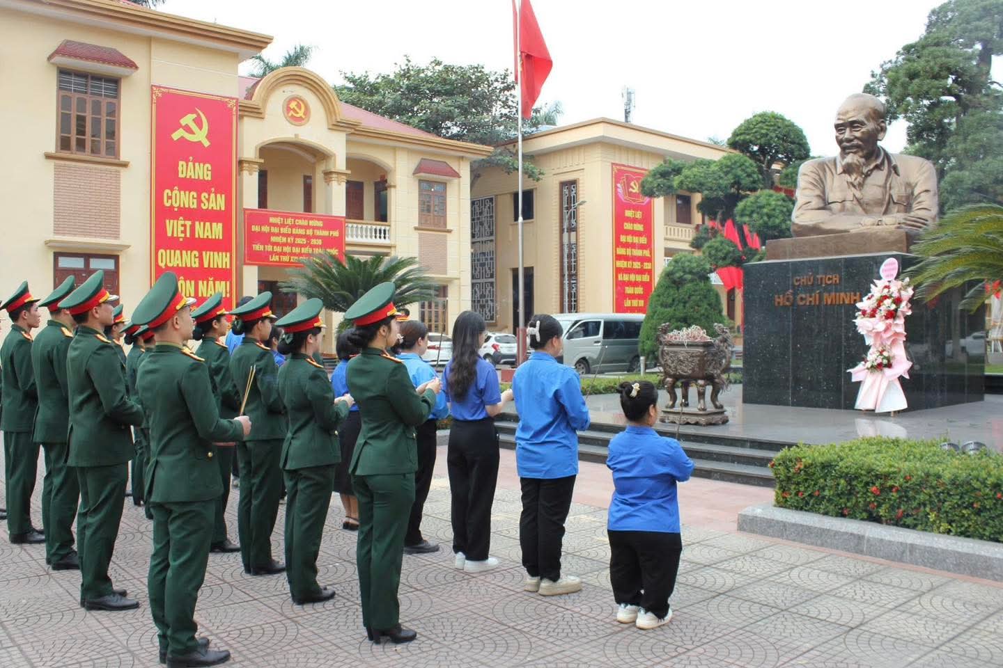 Đoàn viên thanh niên các đơn vị dâng dâng hương, dâng hoa Tượng Chủ tịch Hồ Chí Minh