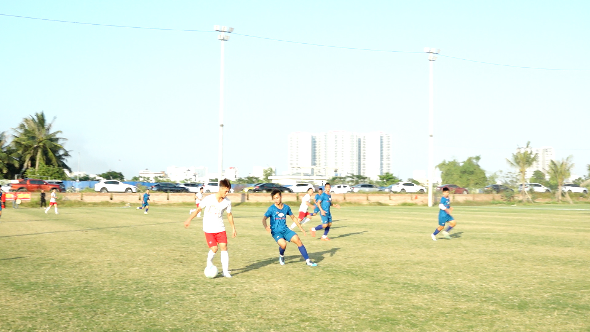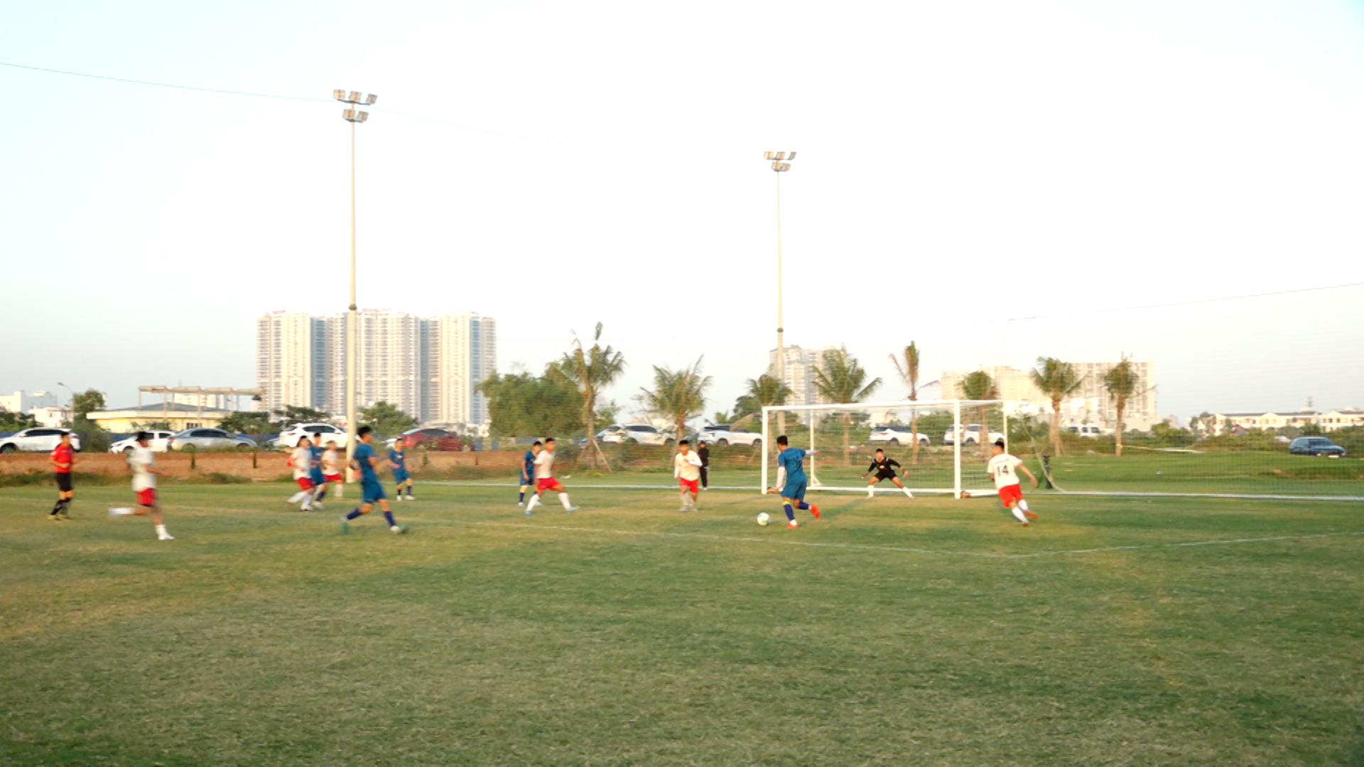 Đội bóng phường Kiến An – FC Gym tổ chức tấn công trong hiệp hai trận đấu tại Sân tập Câu lạc bộ Bóng đá Hải Phòng.