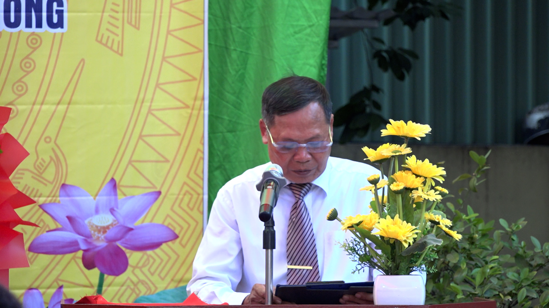 Đồng chí Vũ Xuân Phúc – Uỷ viên Ban Thường vụ Đảng ủy phường, Chủ tịch Uỷ ban Mặt trận Tổ quốc Việt Nam phường tặng hoa chúc mừng Ngày hội Đại đoàn kết toàn dân tộc Tổ dân phố Đống Khê 2