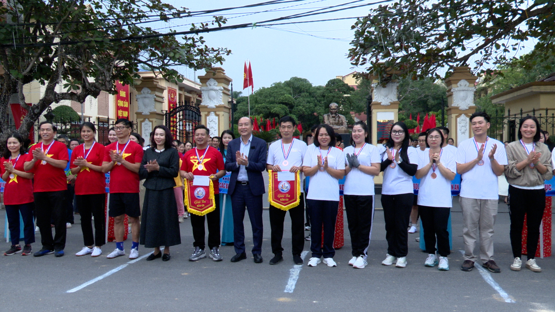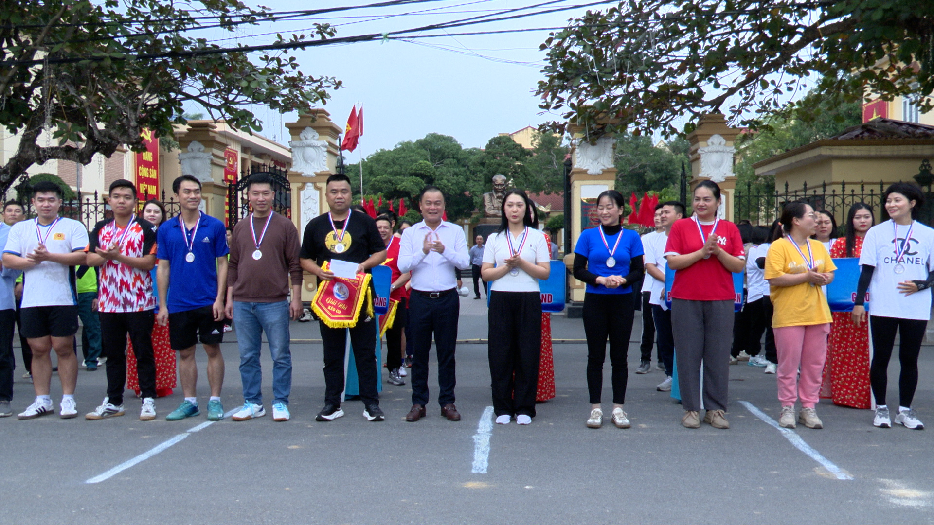 Đồng chí Trần Quang Tuấn – Bí thư Đảng ủy, Chủ tịch HĐND phường trao cờ, giải thưởng và Huy chương Vàng cho các vận động viên đội kéo co khối Quân sự và Trung tâm y tế Kiến An