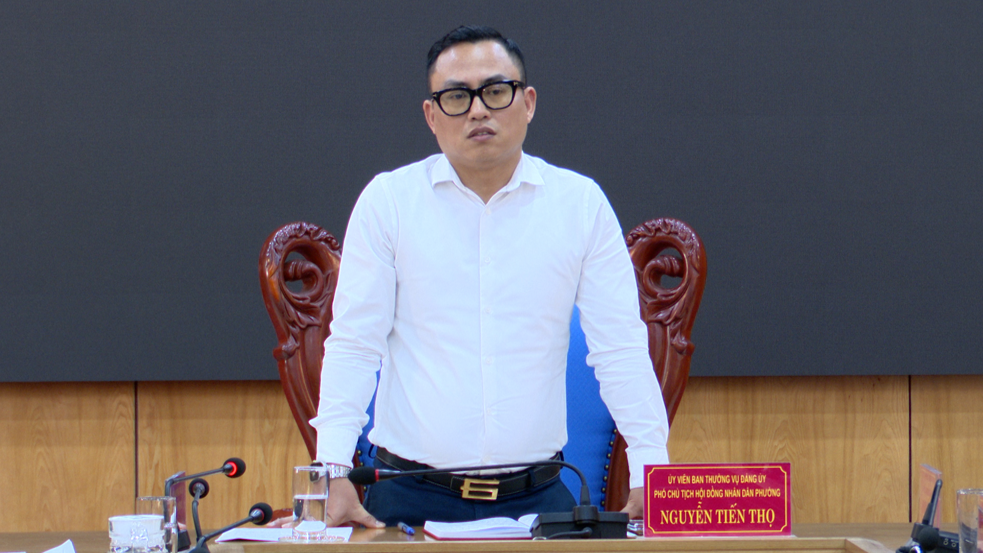 Đồng chí Nguyễn Tiến Thọ - Uỷ viên Ban Thường vụ Đảng uỷ, Phó Chủ tịch HĐND phường phát biểu kết luận hội nghị
