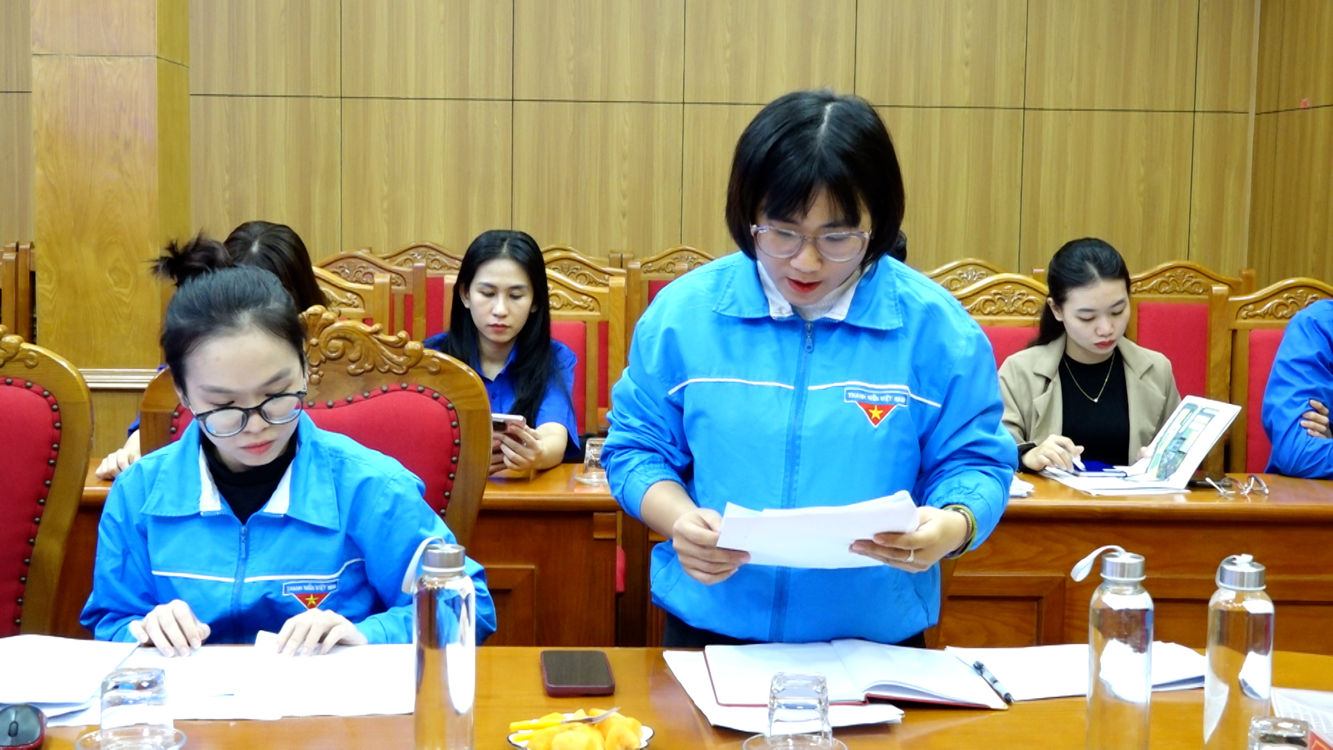 Đồng chí Bùi Thị Phương Anh – Phó Bí thư Đoàn phường trình bày Dự thảo Quy chế hoạt động của Ban Chấp hành Đoàn phường khóa I, nhiệm kỳ 2025–2030