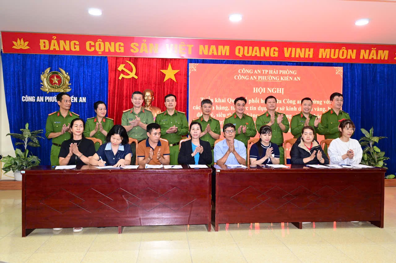 Để triển khai hiệu quả Quy chế phối hợp, đại diện các ngân hàng, tổ chức tín dụng, cơ sở kinh doanh vàng bạc, đá quý, siêu thị và cửa hàng tiện ích trên địa bàn phường đã tiến hành ký cam kết thực hiện các nội dung phối hợp.
