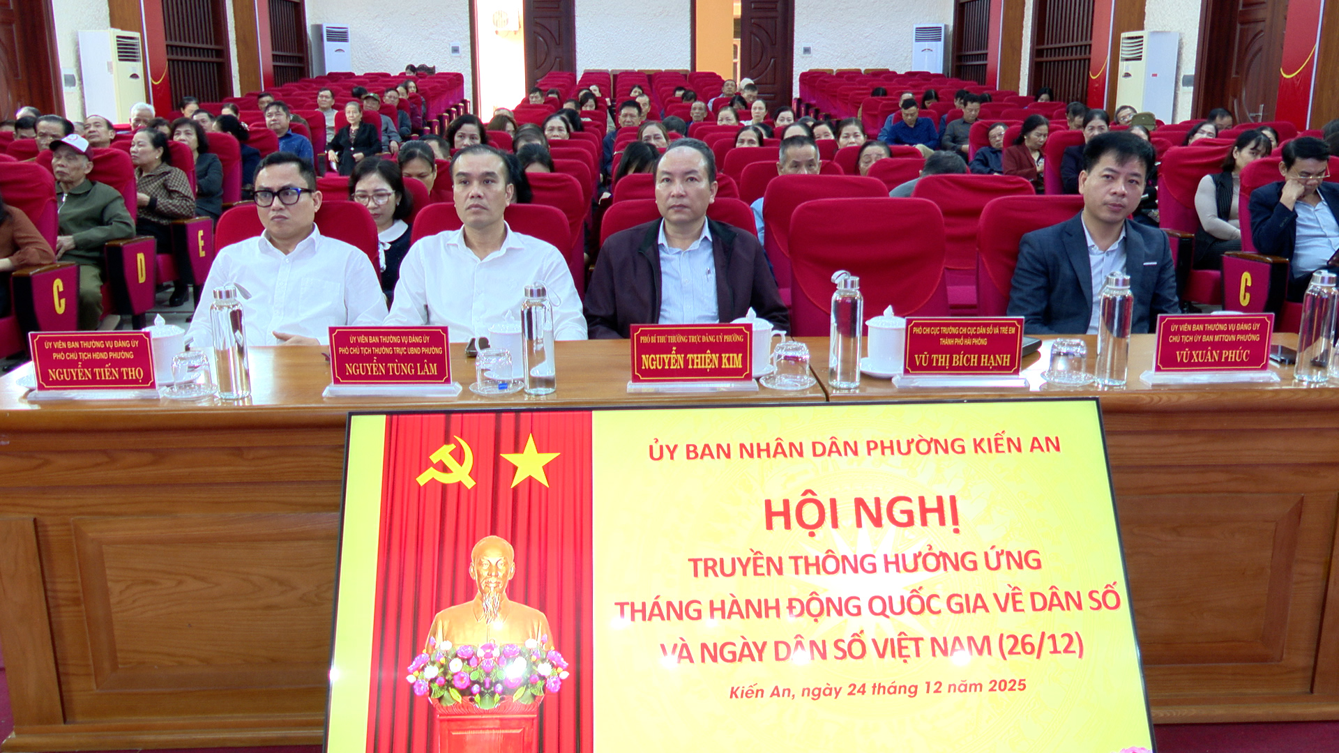 Dự và truyền đạt nội dung tại Hội nghị có Thạc sĩ Vũ Thị Bích Hạnh – Phó Chi cục trưởng Chi cục Dân số và Trẻ em thành phố. Đại biểu phường có đồng chí Nguyễn Thiện Kim – Phó Bí thư Thường trực Đảng ủy phường; đồng chí Vũ Xuân Phúc – Ủy viên Ban Thường vụ Đảng ủy, Chủ tịch Ủy ban Mặt trận Tổ quốc Việt Nam phường; các đồng chí Phó Chủ tịch Hội đồng nhân dân, Ủy ban nhân dân phường. Tham dự Hội nghị còn có lãnh đạo các phòng, đơn vị chuyên môn; Trung tâm Y tế Kiến An; các Trạm Y tế phường Kiến An số 1, 2, 3, 4; đại diện Ban Giám hiệu các trường học trên địa bàn; Bí thư Chi bộ, Tổ trưởng Tổ dân phố, Trưởng ban Công tác Mặt trận và các cộng tác viên dân số trên địa bàn phường.
