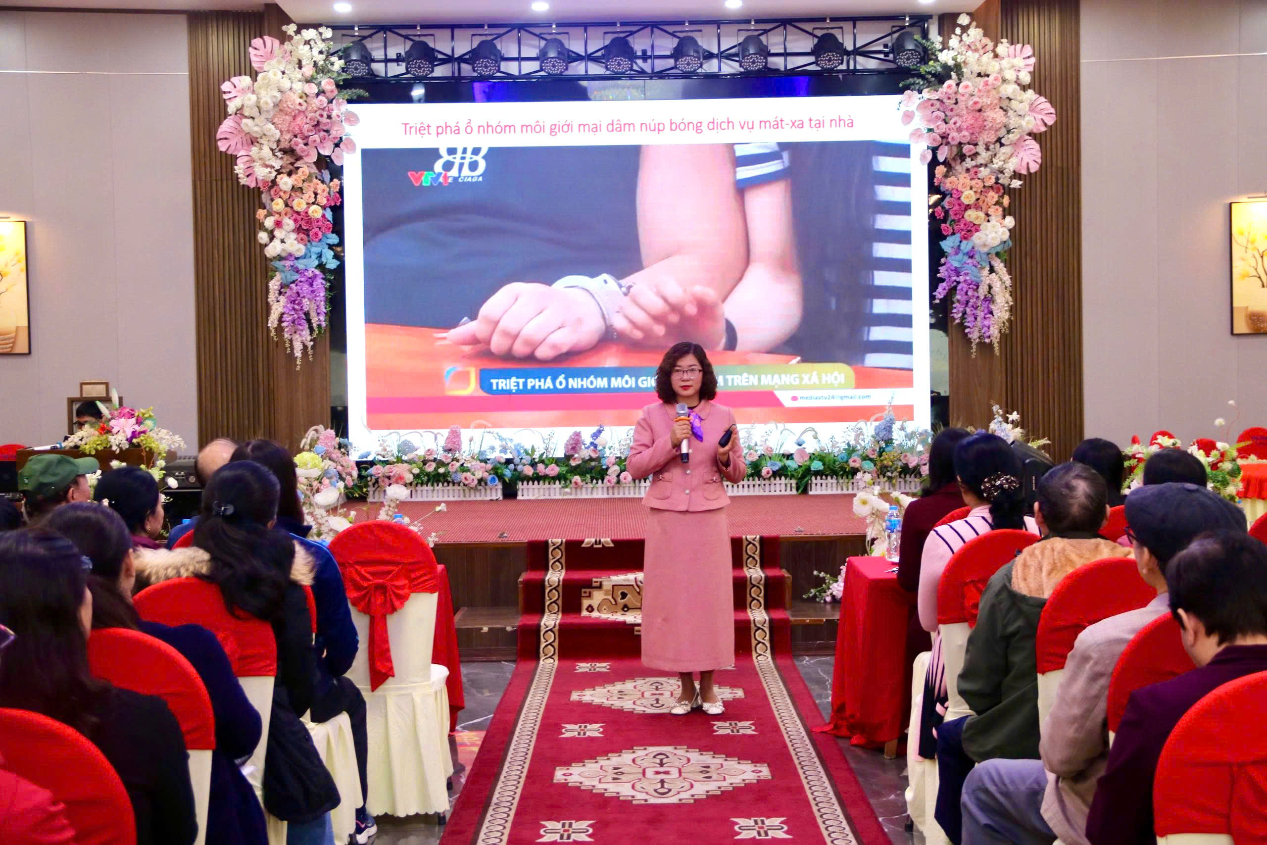 Tại hội nghị, các đại biểu đã được báo cáo viên Nguyễn Ngọc Bích, Phòng Phòng chống tệ nạn và Bảo trợ xã hội, Sở Y tế thông tin tình hình chung về công tác phòng chống tệ nạn mại dâm trên cả nước và tại thành phố Hải Phòng, những diễn biến phức tạp của hoạt động mại dâm trá hình, biến tướng trên không gian mạng; tác hại của mại dâm đối với đời sống xã hội; công tác đấu tranh, xử lý vi phạm theo quy định của pháp luật. Đặc biệt là các nội dung chính sách pháp luật về phòng chống mại dâm; Một số quy định xử phạt về mại dâm theo Nghị định 144/2021/NĐ-CP; … Ngoài ra, các đại biểu được phổ biến Nghị quyết số 49/NQ-HĐND ngày 8/12/2023 của HĐND thành phố về công tác phòng chống mại dâm đến năm 2025 trên địa bàn thành phố.
