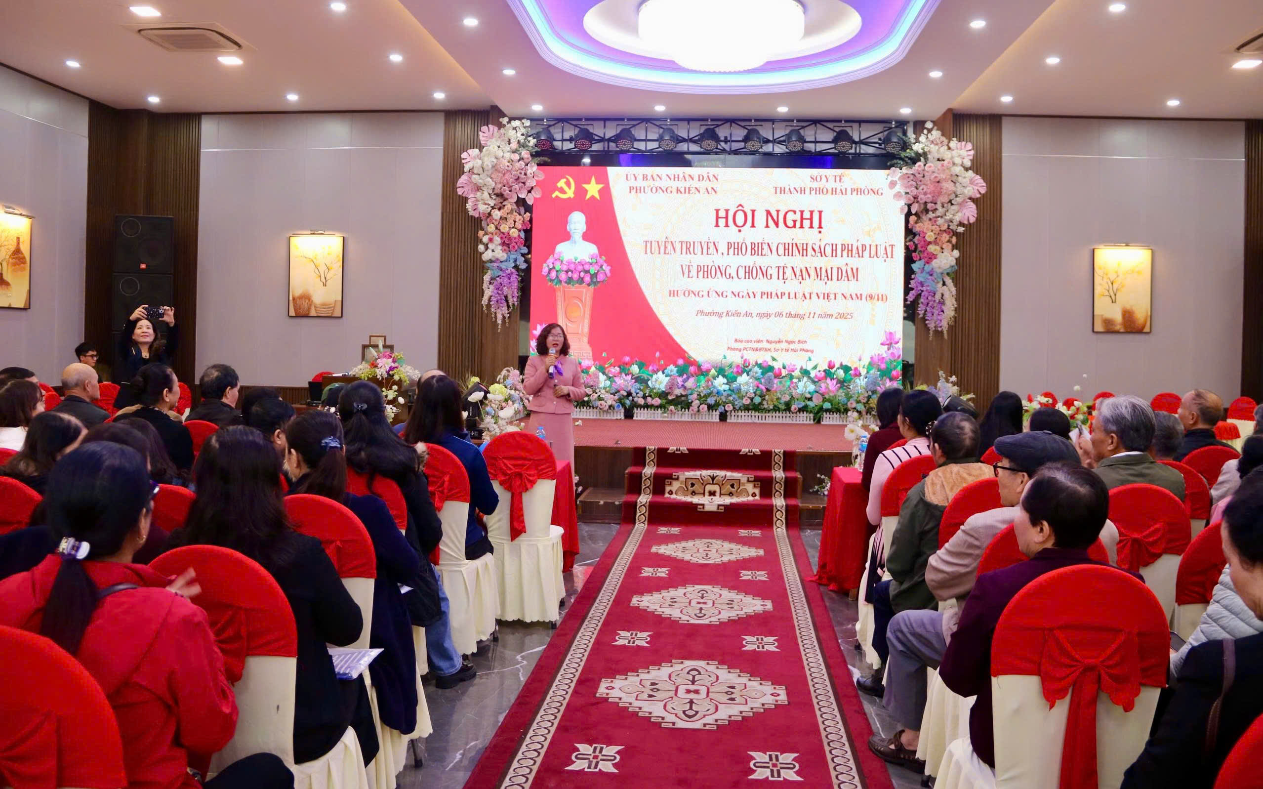 Sáng 06/11, Ủy ban nhân dân phường Kiến An phối hợp với Sở Y tế thành phố tổ chức Hội nghị “ Tuyên truyền, phổ biến chính sách pháp luật của Đảng, Nhà nước, thành phố về công tác phòng chống mại dâm”. Đây là hoạt động thiết thực hưởng ứng Ngày Pháp luật Việt Nam (9/11), góp phần nâng cao nhận thức và trách nhiệm của các tầng lớp nhân dân trong việc thực hiện pháp luật, xây dựng đời sống văn hóa lành mạnh trên địa bàn phường.
