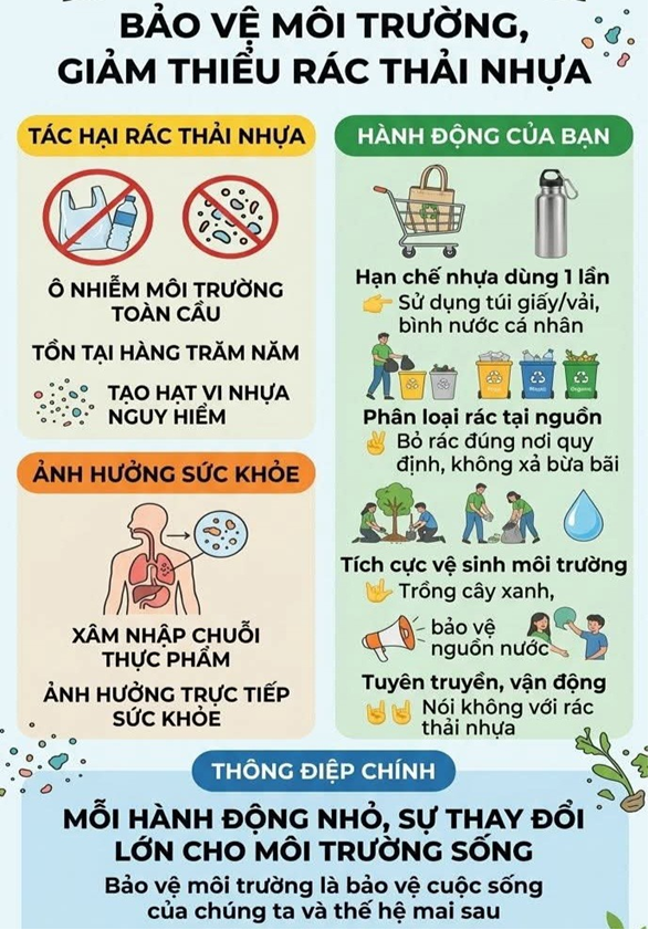Bảo vệ môi trường chính là bảo vệ cuộc sống của chúng ta hôm nay và các thế hệ mai sau. Mỗi hành động nhỏ như giảm một túi nilon, bỏ rác đúng nơi quy định… sẽ góp phần tạo nên sự thay đổi lớn cho môi trường sống.