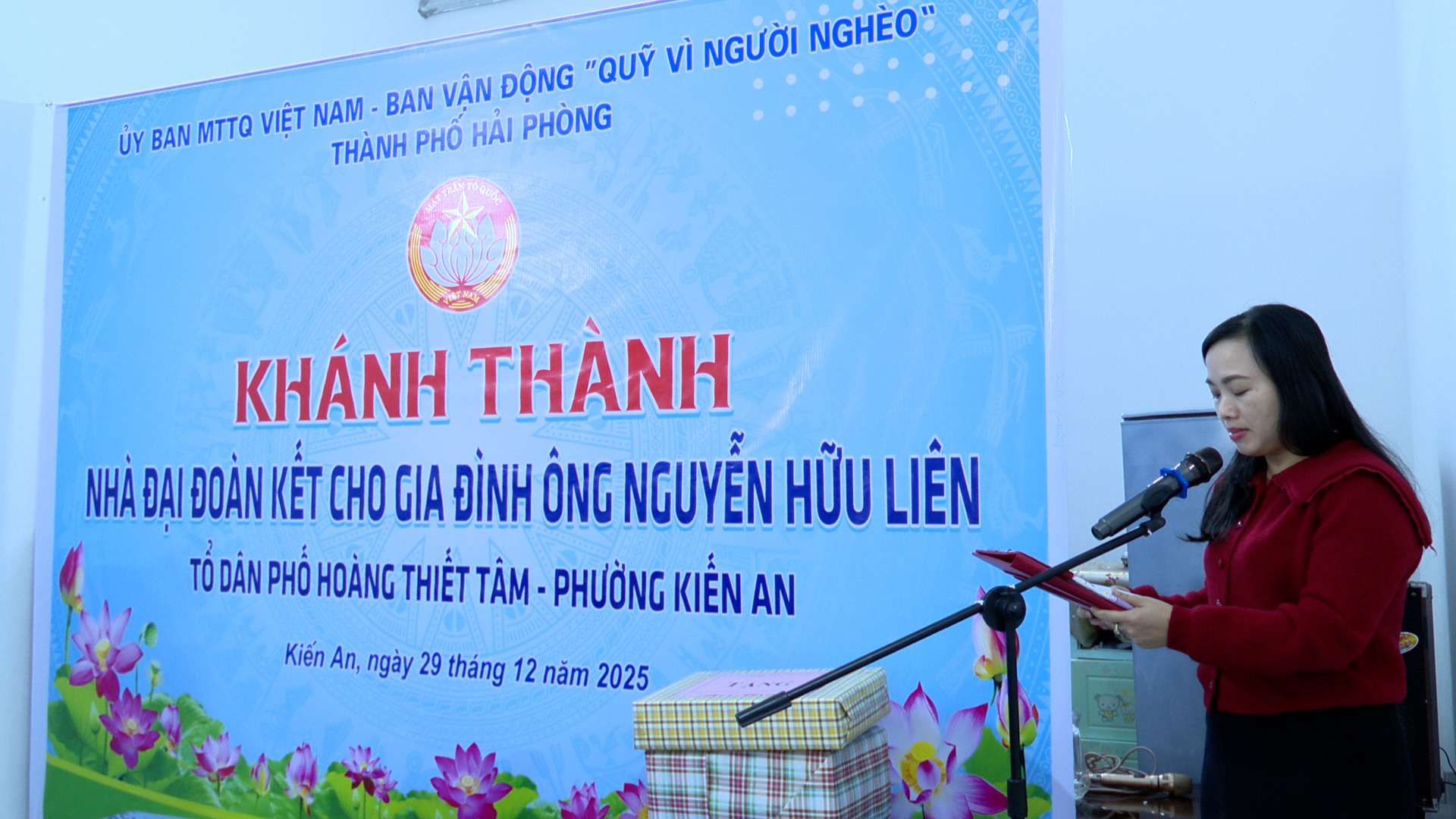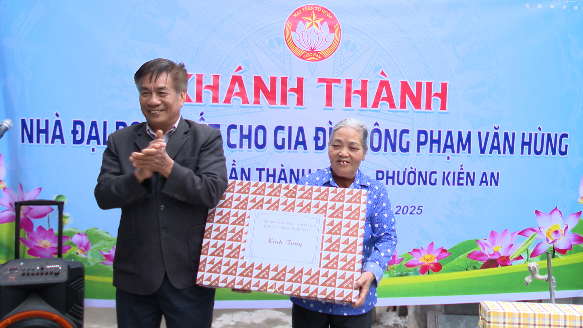 Ông Nguyễn Hữu Liên (Tổ dân phố Hoàng Thiết Tâm), sinh năm 1940, thuộc diện hộ nghèo. Bản thân ông bị tàn tật và mù cả hai mắt, sống một mình, sức khỏe yếu, kinh tế khó khăn. Được sự quan tâm của Uỷ ban Mặt trận Tổ quốc Việt Nam thành phố và phường Kiến An, ngôi nhà của ông được khởi công xây dựng ngày 21/10/2025 đến nay đã hoàn thành với tổng diện tích sử dụng hơn 30 m². Ngôi nhà mới xây kiên cố, thay thế cho ngôi nhà cũ đã xuống cấp nghiêm trọng. Tổng kinh phí xây dựng là hơn 180 triệu đồng, trong đó quỹ “Vì người nghèo thành phố” hỗ trợ 100 triệu đồng, phần còn lại do gia đình, bạn bè, hàng xóm hỗ trợ.