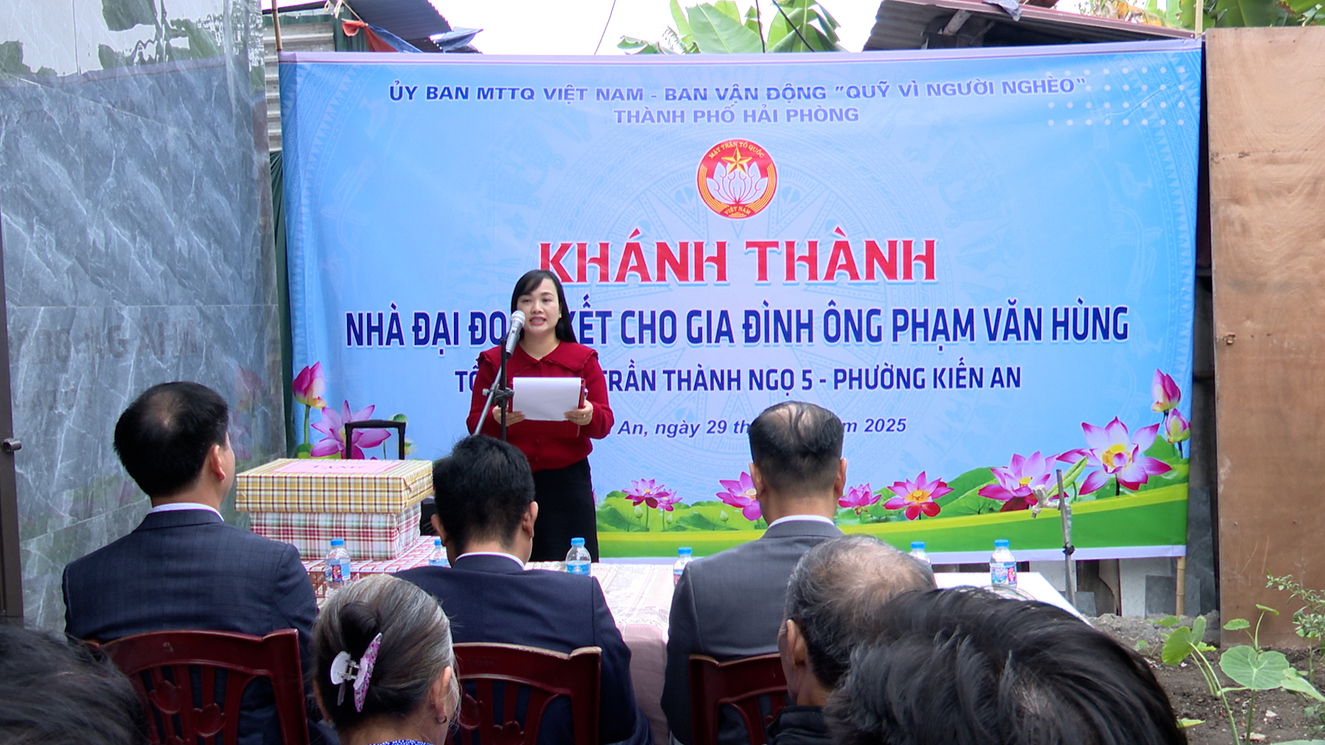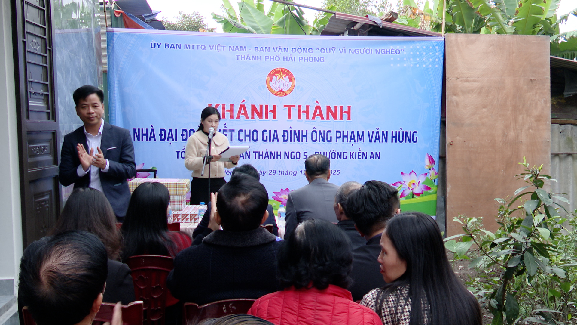 Được sự quan tâm của Uỷ ban Mặt trận Tổ quốc Việt Nam thành phố và phường Kiến An, sau hơn 2 tháng khởi công xây dựng, đến nay ngôi nhà đã hoàn thành trong niềm vui mừng, phấn khởi của gia đình ông Phạm Văn Hùng. Ngôi nhà mới được xây dựng có diện tích hơn 30 m², tổng kinh phí xây dựng là 150 triệu đồng. Trong đó, quỹ “Vì người nghèo thành phố” hỗ trợ 100 triệu đồng, phần còn lại do gia đình, bạn bè, hàng xóm hỗ trợ.