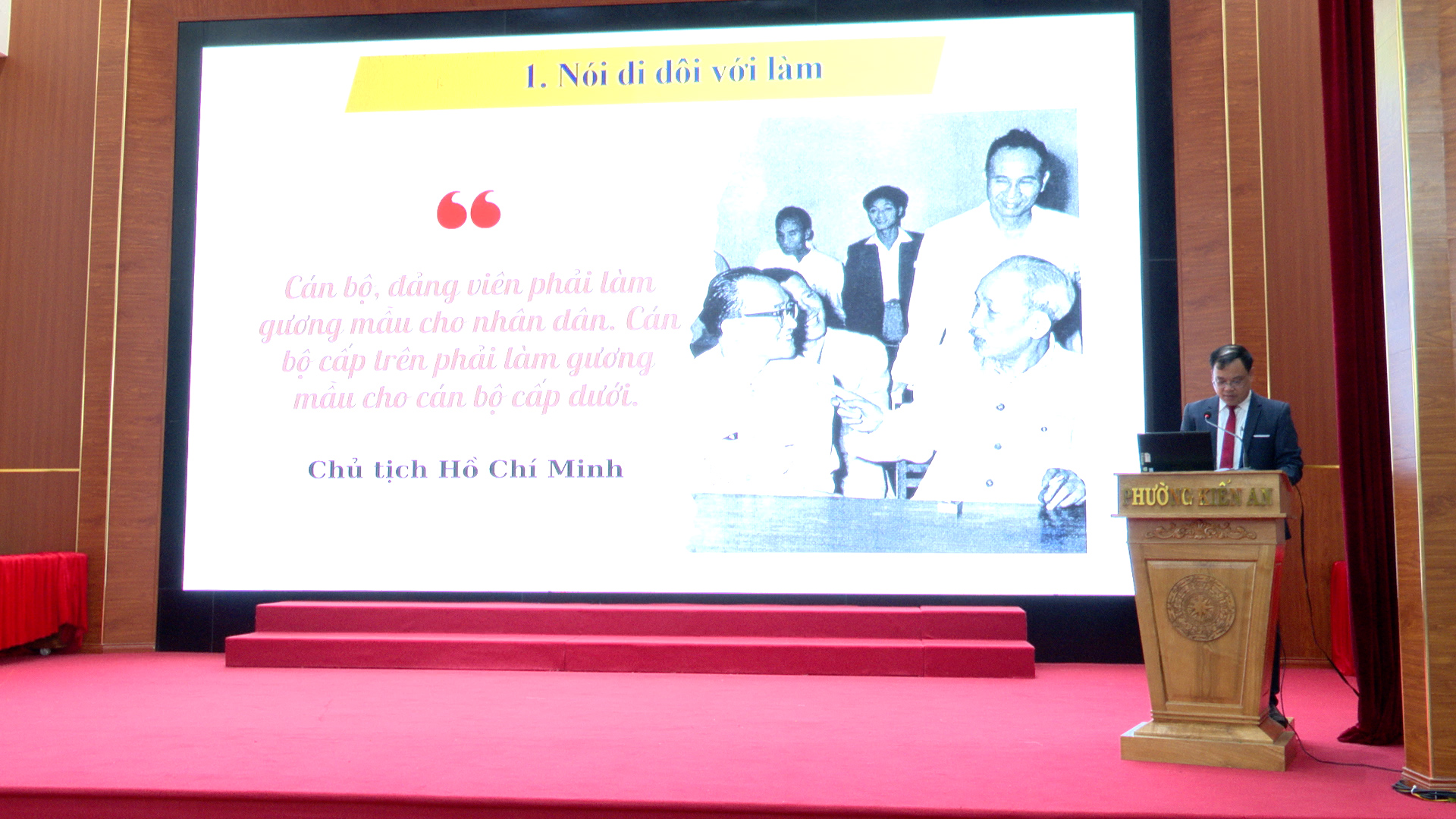 Các đồng chí lãnh đạo, đảng viên, cán bộ, công chức, viên chức phường đã nghe đồng chí Đoàn Đình Dũng – Uỷ viên Đảng uỷ, Giám đốc Trung tâm Phục vụ hành chính công phường kể chuyện về tấm gương đạo đức, phong cách Hồ Chí Minh với chủ đề: “Nói đi đôi với làm” trong giải quyết thủ tục hành chính cho Nhân dân. Bài học được rút ra từ câu chuyện đó là: Lời nói chỉ có giá trị khi được chứng minh bằng việc làm cụ thể. Nói đi đôi với làm là thước đo của đạo đức công vụ. Cải cách hành chính không phải là khẩu hiệu, mà là hành động cụ thể mỗi ngày. Cải cách hành chính phải thiết thực, hiệu quả. Cán bộ là công bộc của dân. Cán bộ phải thật sự là người đầy tớ trung thành của Nhân dân.