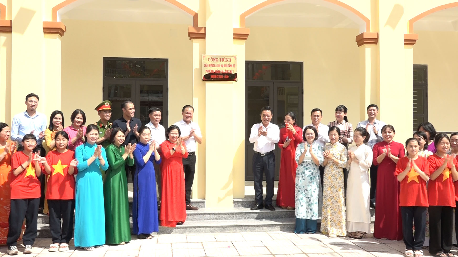 Các đồng chí lãnh đạo phường dự Lễ khánh thành công trình nhà lớp học 4 tầng trường THCS Bắc Sơn