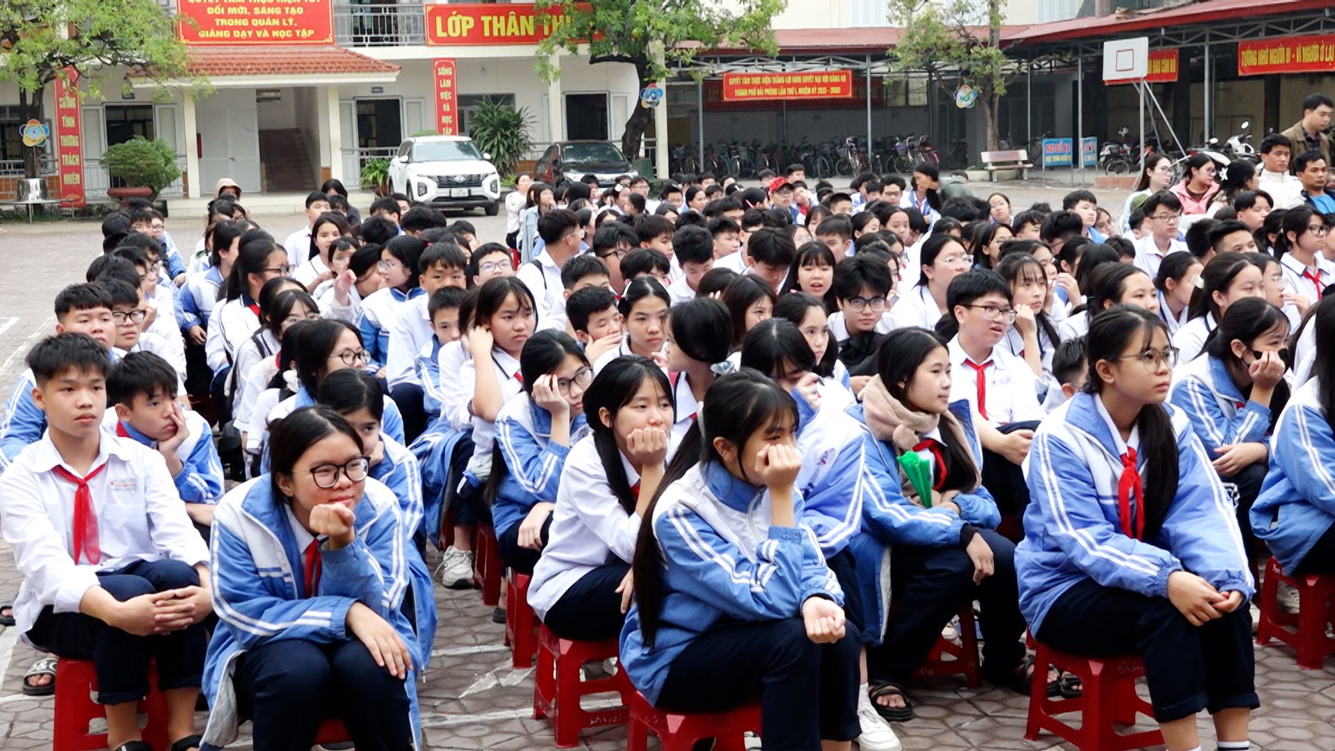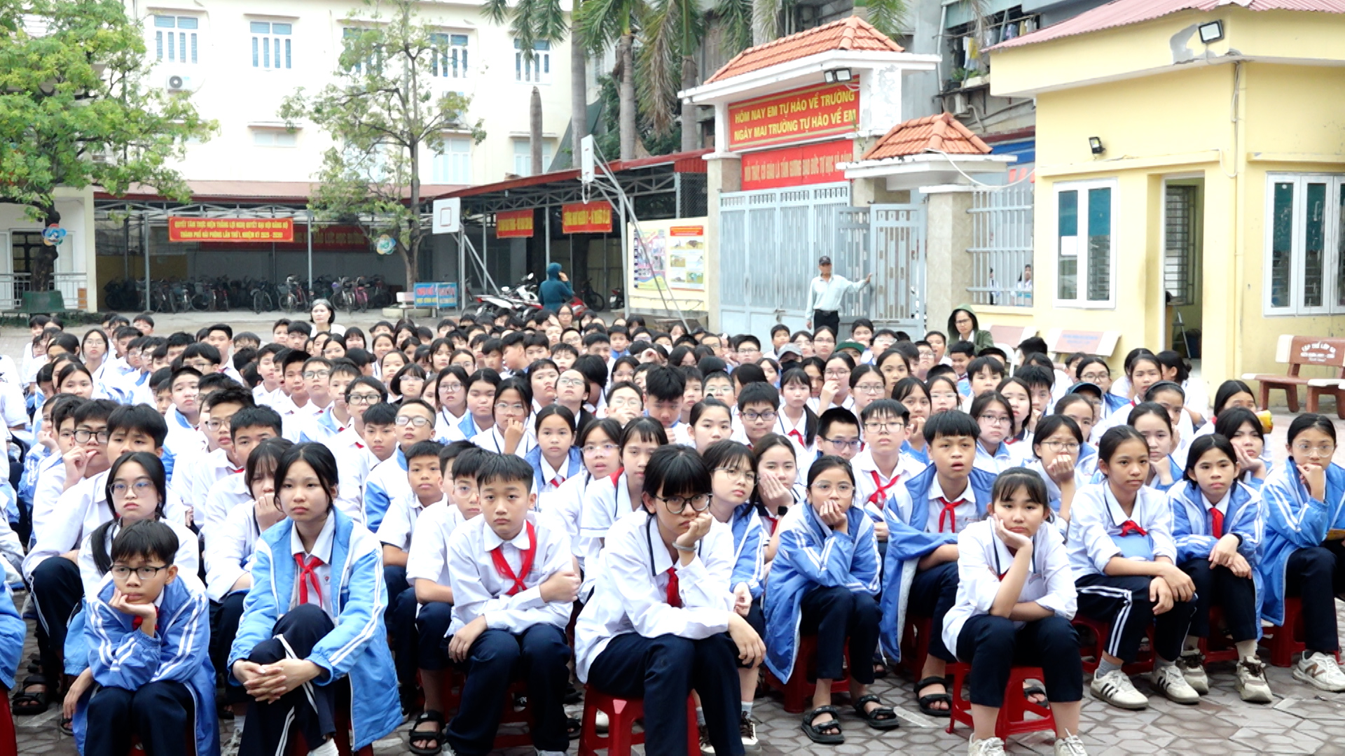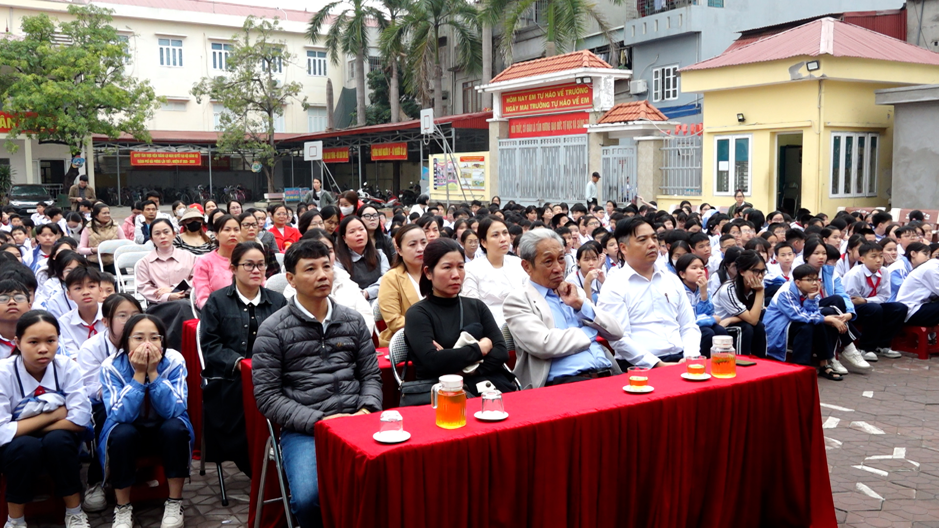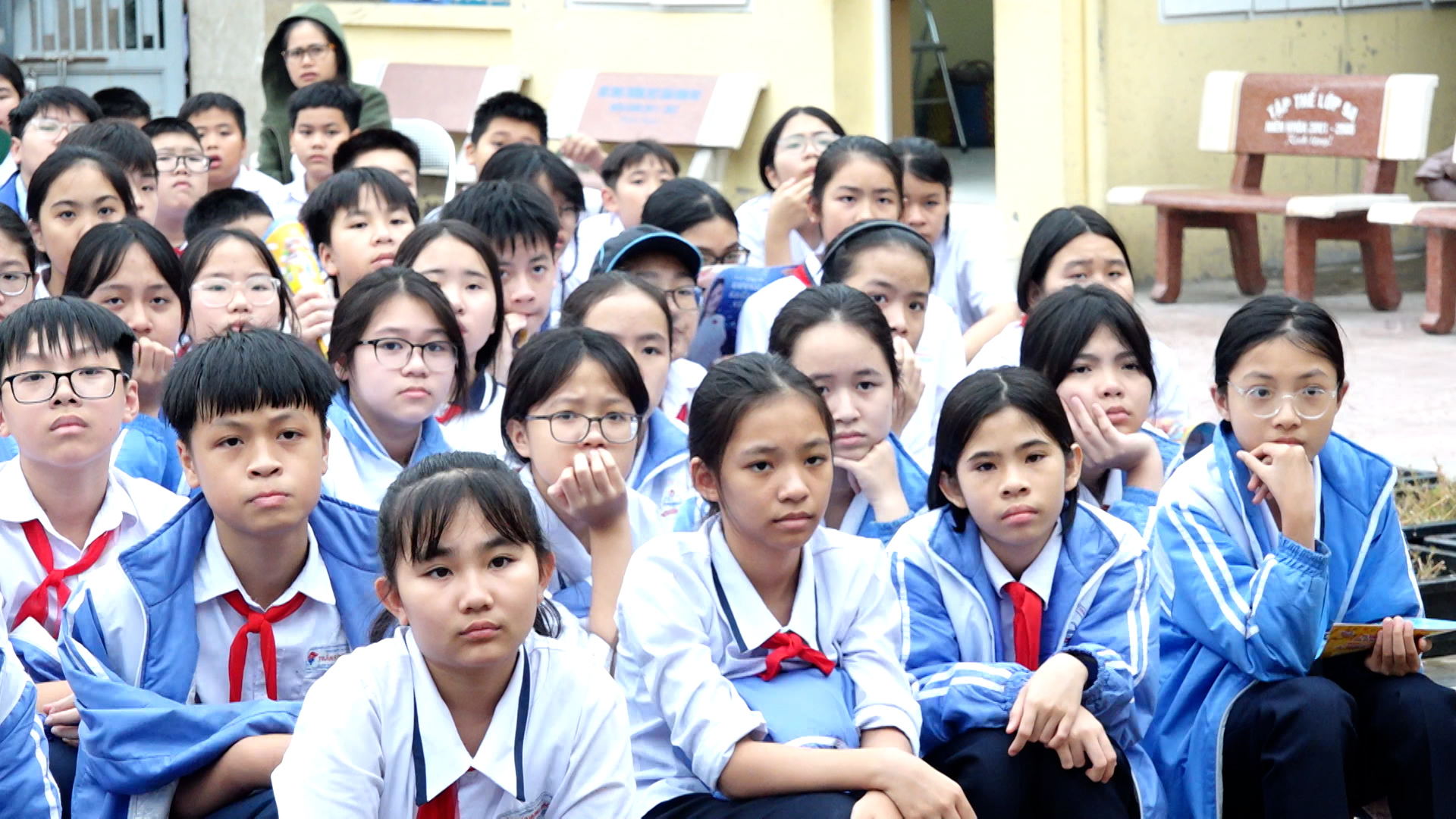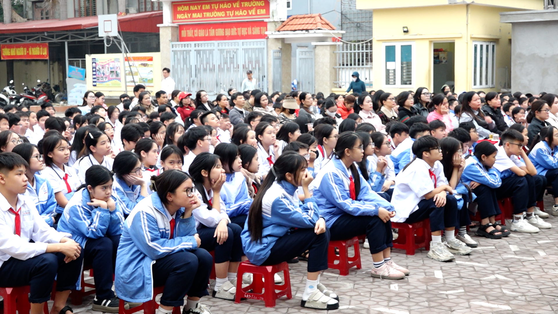 Phim “Mưa đỏ” được chiếu miễn phí cho hơn 450 cán bộ, giáo viên, nhân viên, phụ huynh và học sinh khối 8, khối 9 trường THCS Trần Hưng Đạo