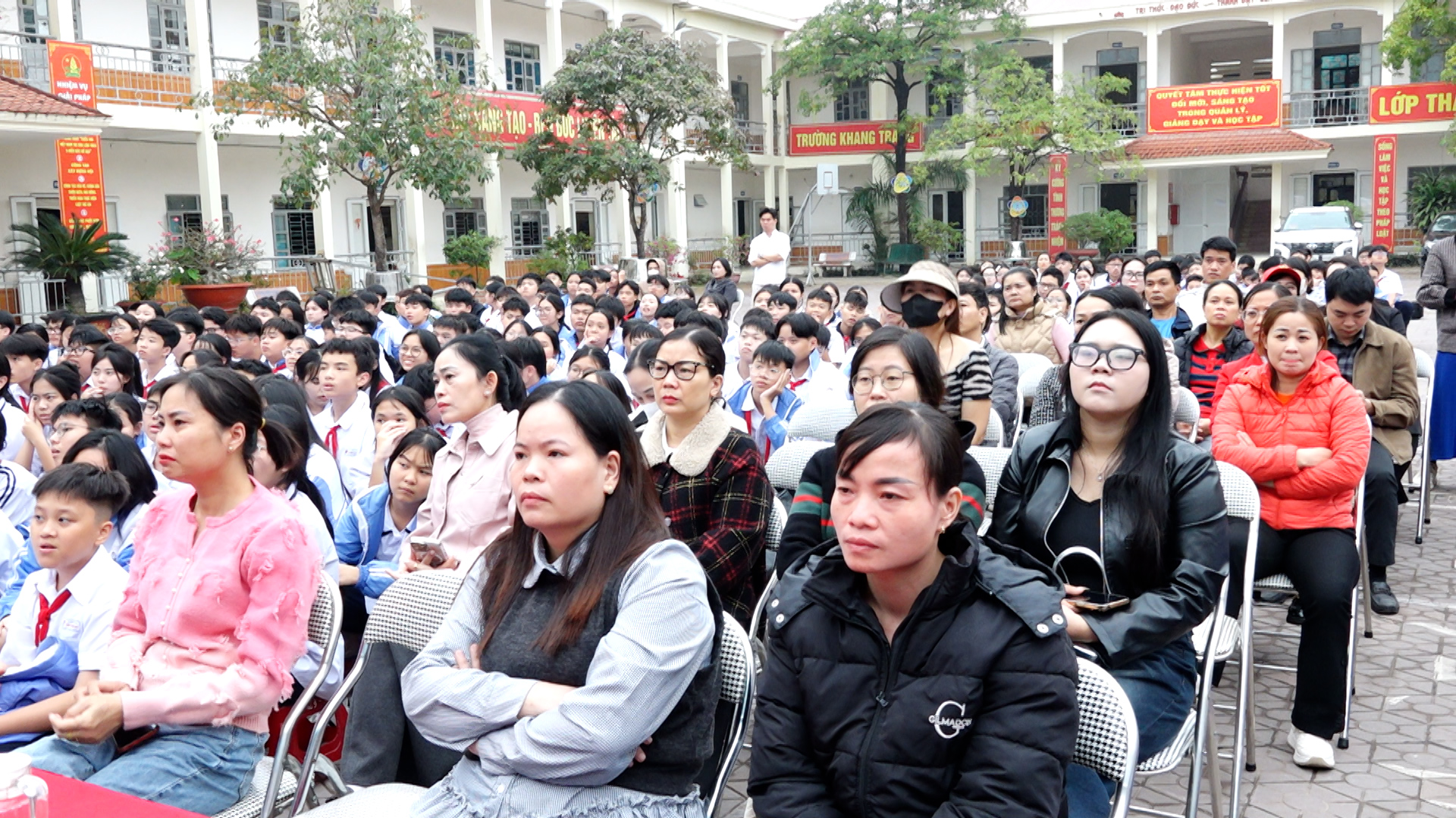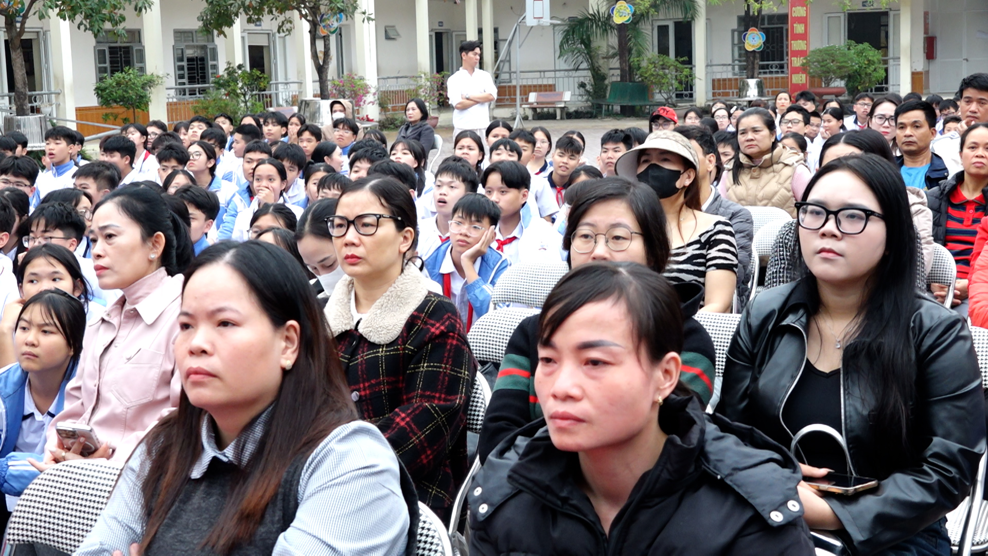 Cán bộ, giáo viên, nhân viên, phụ huynh và học sinh khối 8,9 trường THCS Trần Hưng Đạo xem phim “Mưa đỏ”