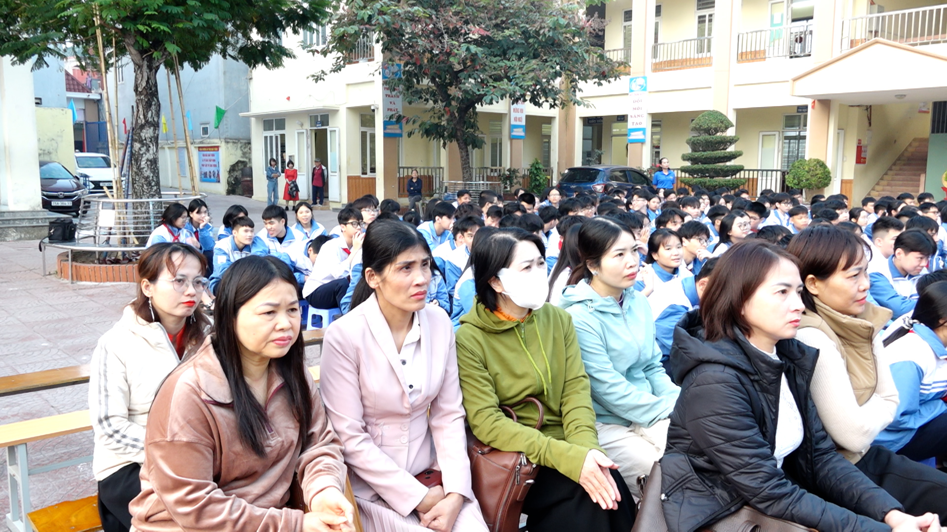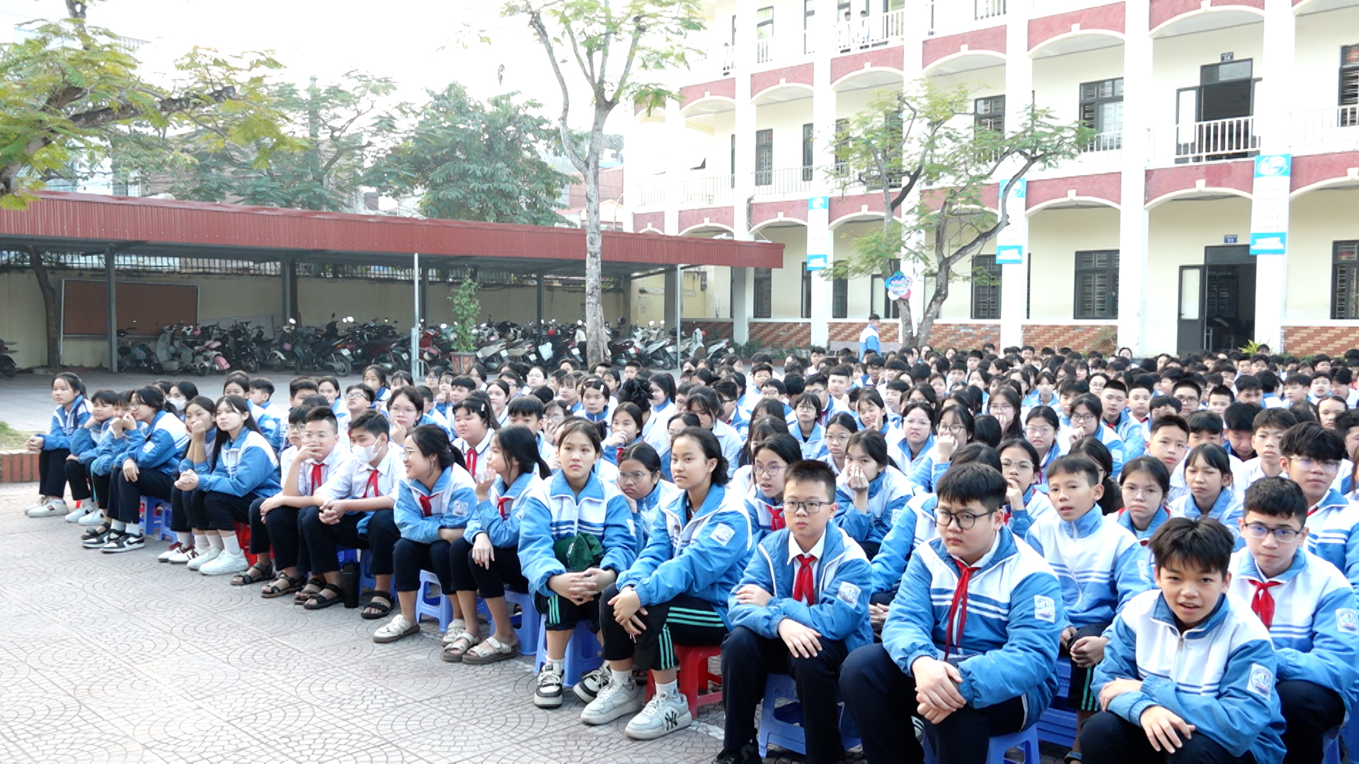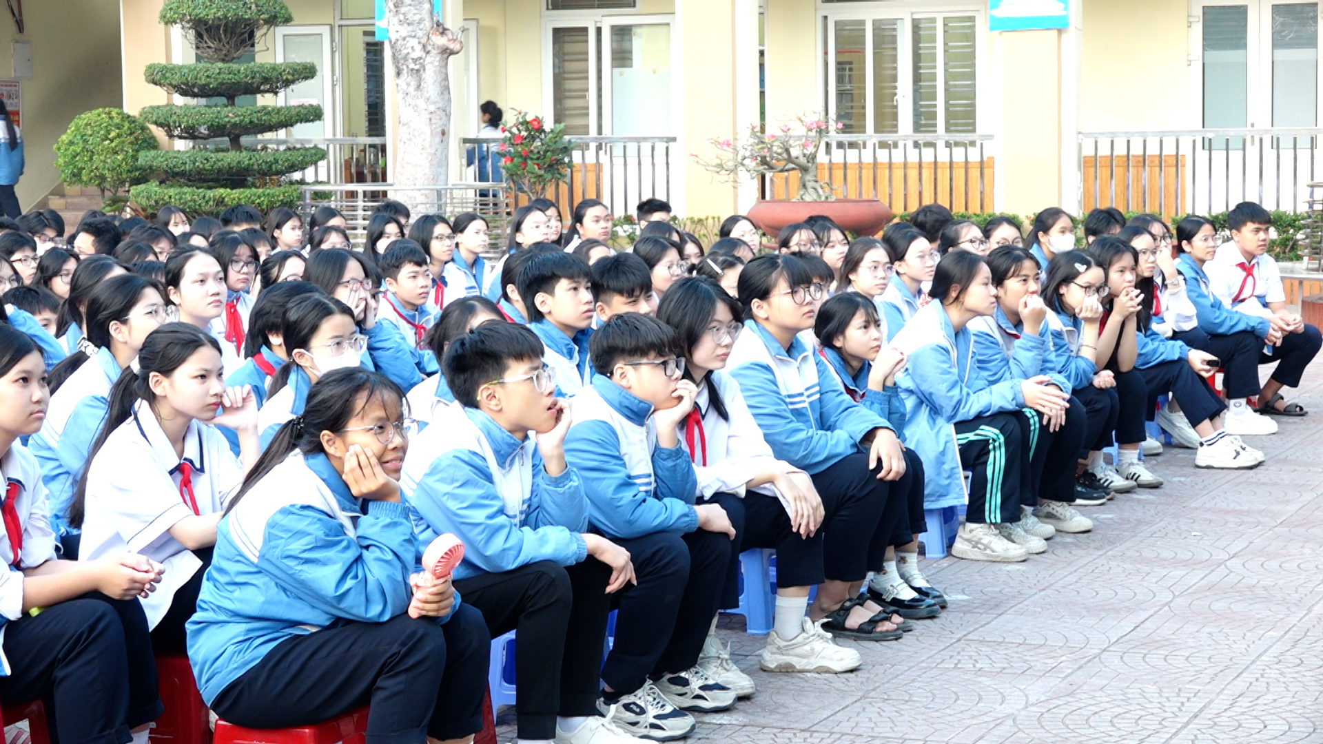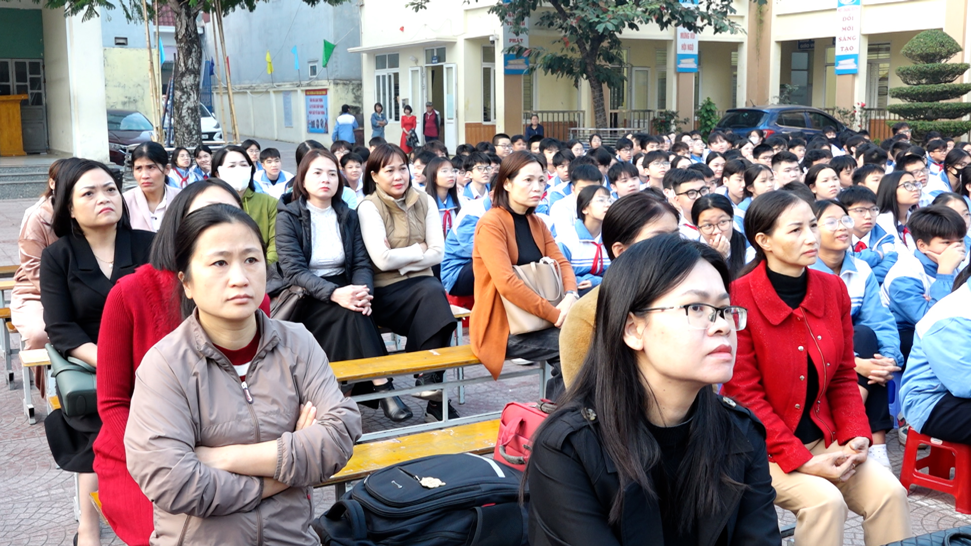 Cán bộ, giáo viên, nhân viên, phụ huynh và học sinh trường THCS Đồng Hòa xem phim “Mưa đỏ”