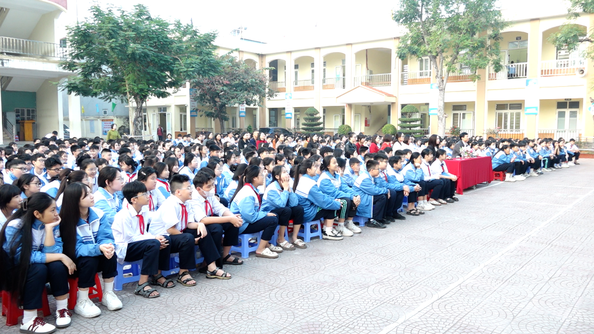 Phim “Mưa đỏ” được công chiếu miễn phí cho gần 850 cán bộ, giáo viên, nhân viên, phụ huynh và học sinh khối 8,9 trường THCS Đồng Hòa