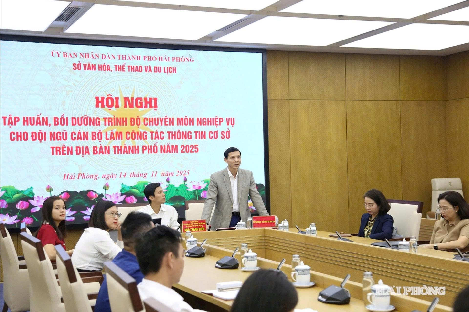 Sáng 14/11, tại Trung tâm Hội nghị và Biểu diễn thành phố, Sở Văn hóa, Thể thao và Du lịch thành phố tổ chức Lớp tập huấn bồi dưỡng trình độ chuyên môn nghiệp vụ cho đội ngũ cán bộ làm công tác thông tin cơ sở trên địa bàn thành phố năm 2025. Đồng chí Ngô Thanh Hiển – Phó Cục trưởng Cục Thông tin cơ sở và Thông tin đối ngoại, giảng viên lớp tập huấn.