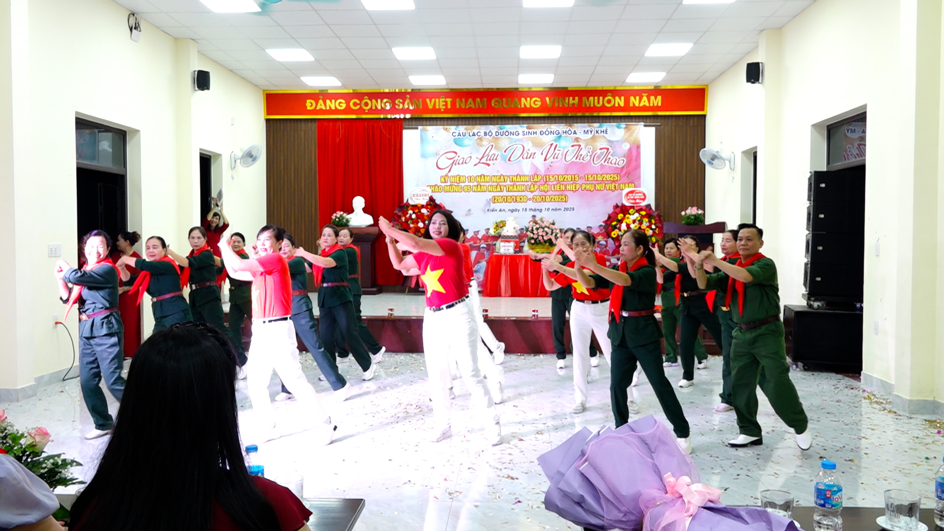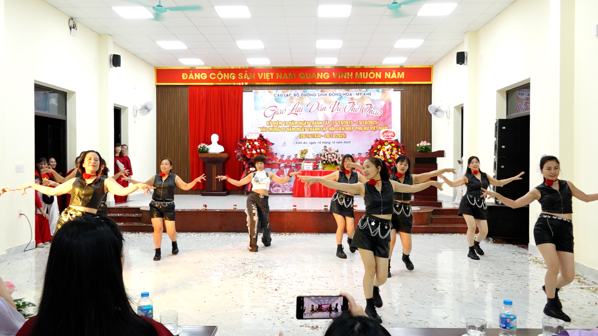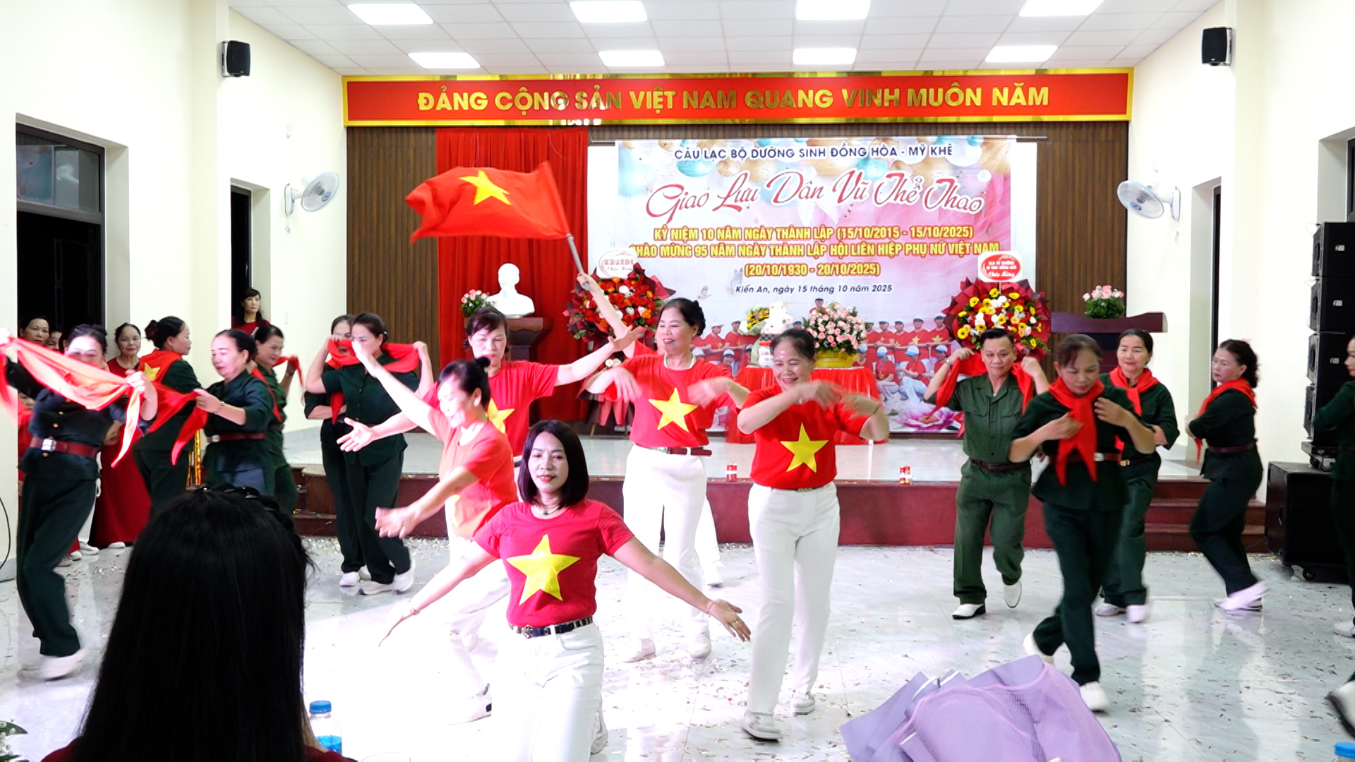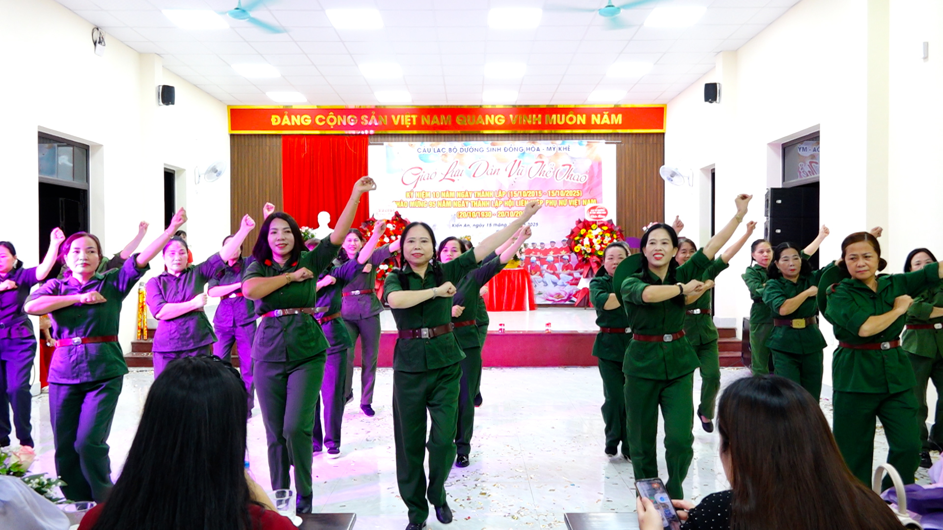 Hòa trong không khí thi đua sôi nổi của phụ nữ cả nước kỷ niệm 95 năm ngày thành lập Hội Liên hiệp Phụ nữ Việt Nam (20/10/1930 – 20/10/2025) và 10 năm thành lập Câu lạc bộ Dưỡng sinh Đồng Hòa – Mỹ Khê, tối ngày 15/10, chương trình “Giao lưu dân vũ – thể thao” do hai Câu lạc bộ Dưỡng sinh Đồng Hòa và Mỹ Khê phối hợp tổ chức diễn ra trong không khí vui tươi, sôi nổi.