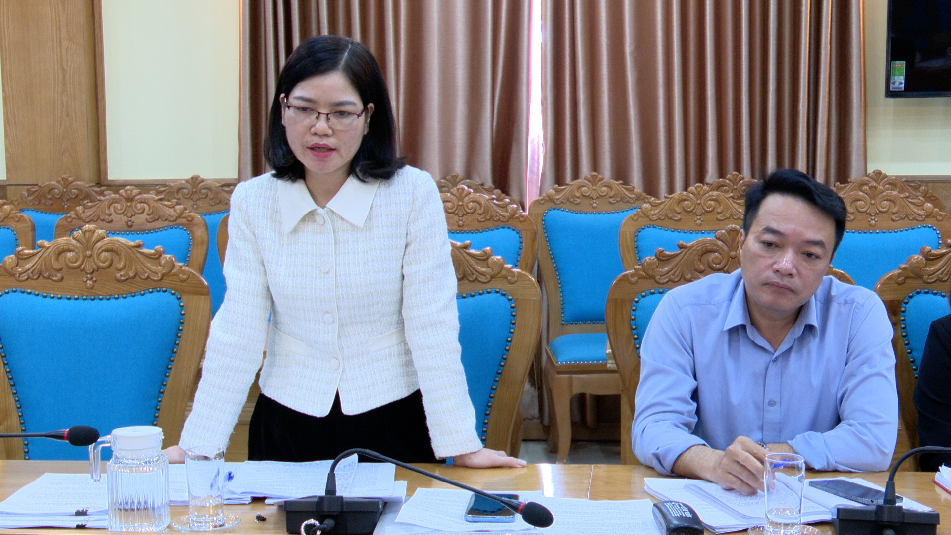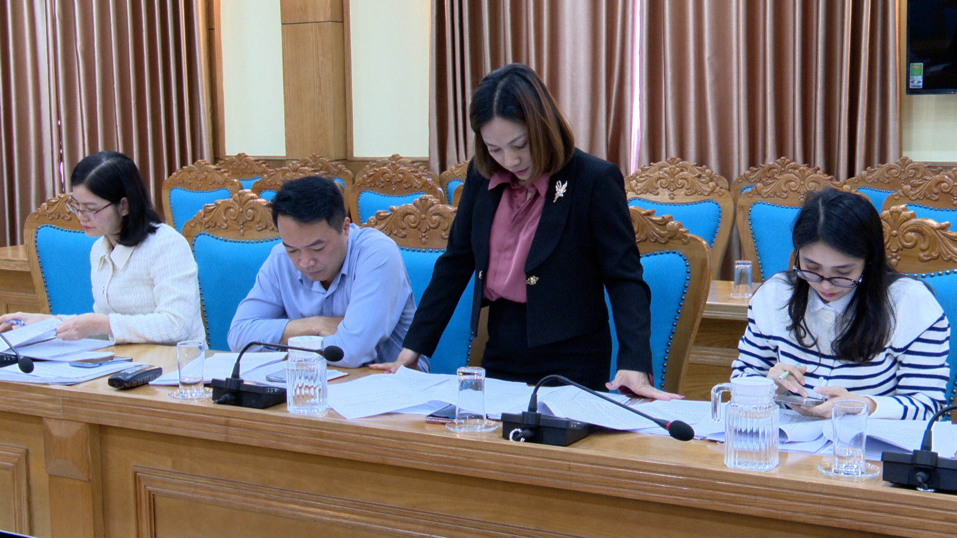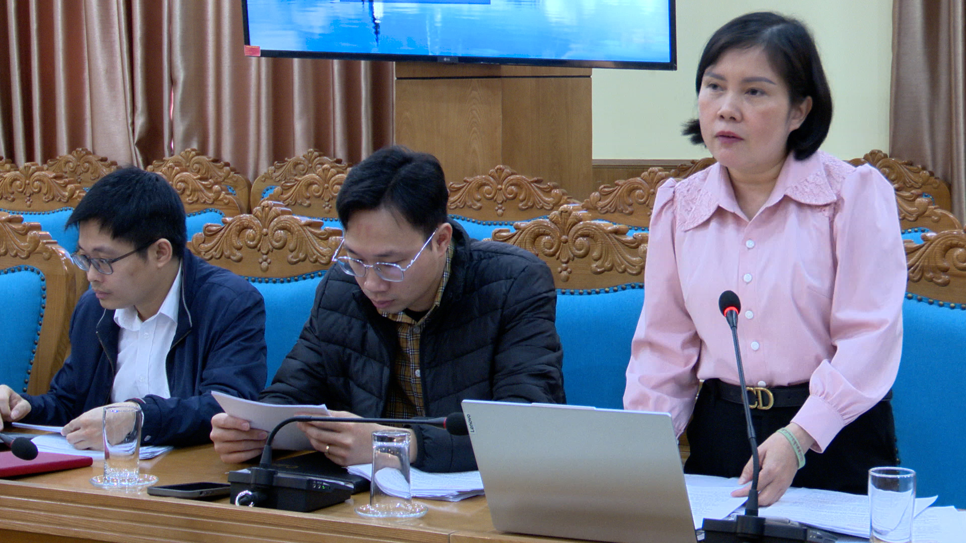 Đồng chí Nguyễn Thị Thùy Dương - Ủy viên Ban Thường vụ Đảng ủy, Chủ nhiệm Ủy ban Kiểm tra Đảng ủy phường, Trưởng Ban Ban Văn hóa – Xã hội HĐND phường chủ trì nội dung thẩm tra của Ban Văn hóa Xã hội Hội đồng nhân dân phường