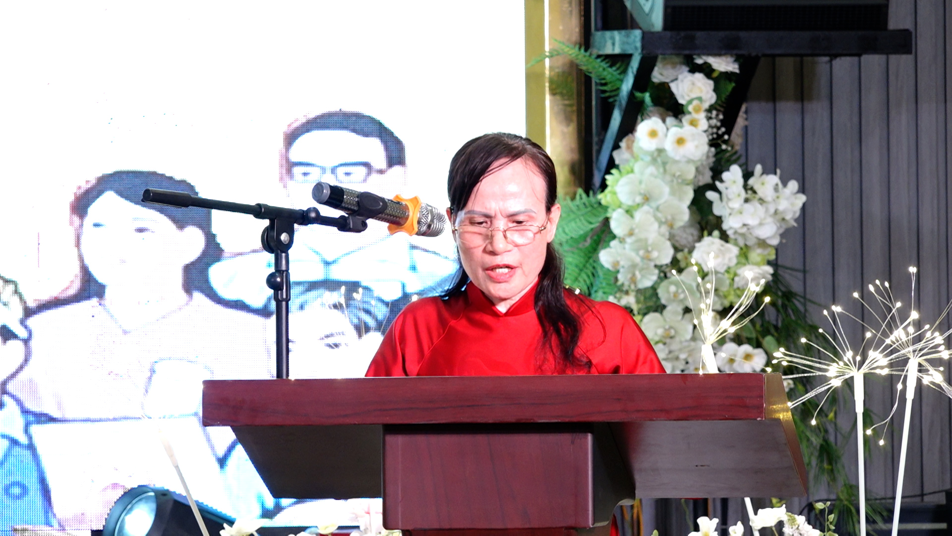 Bà Bùi Thị Mai - Trưởng ban Công tác Mặt trận Tổ dân phố Đồng Hòa 4 trình bày diễn văn kỷ niệm 95 năm Ngày truyền thống Mặt trận Tổ quốc Việt Nam