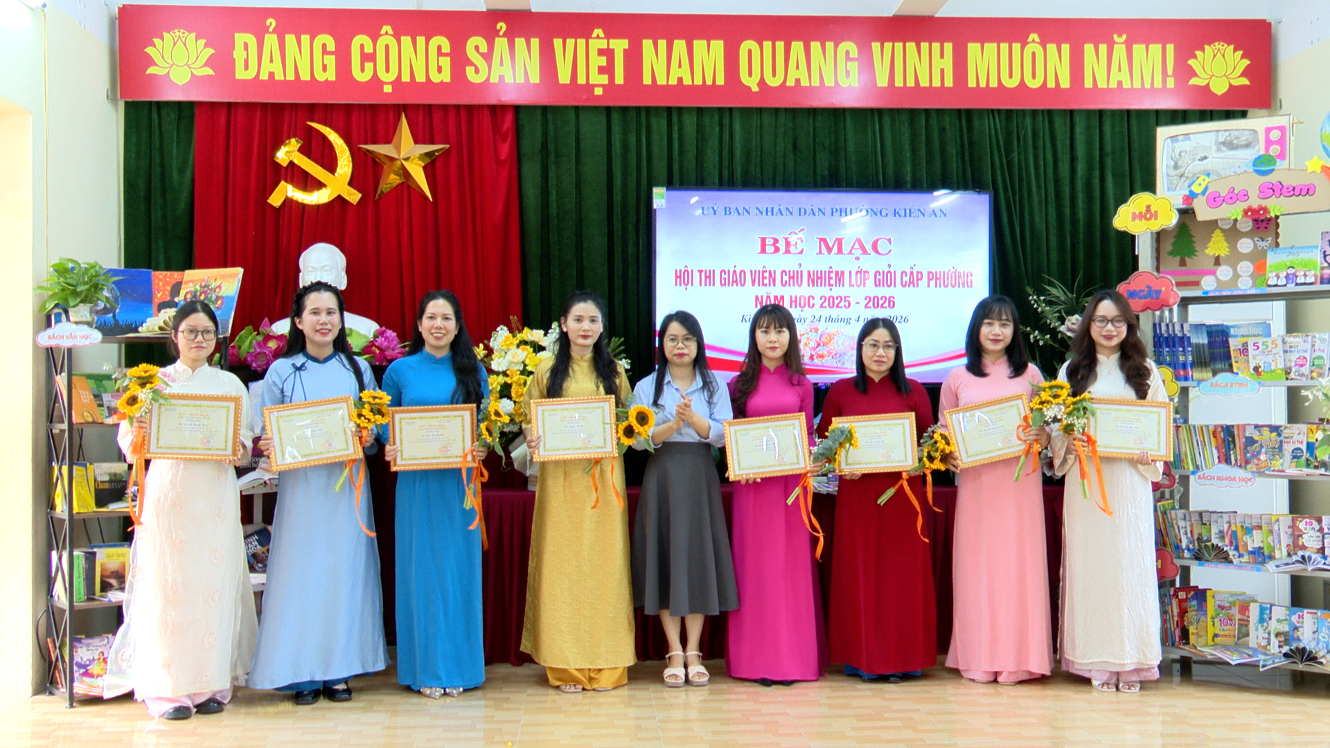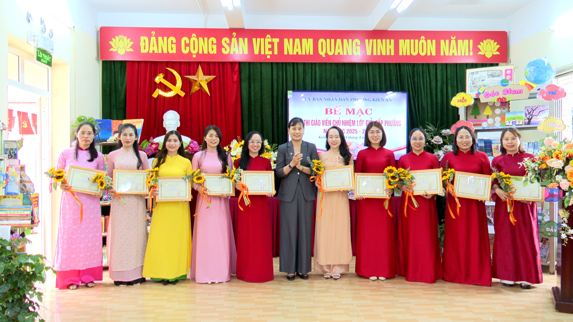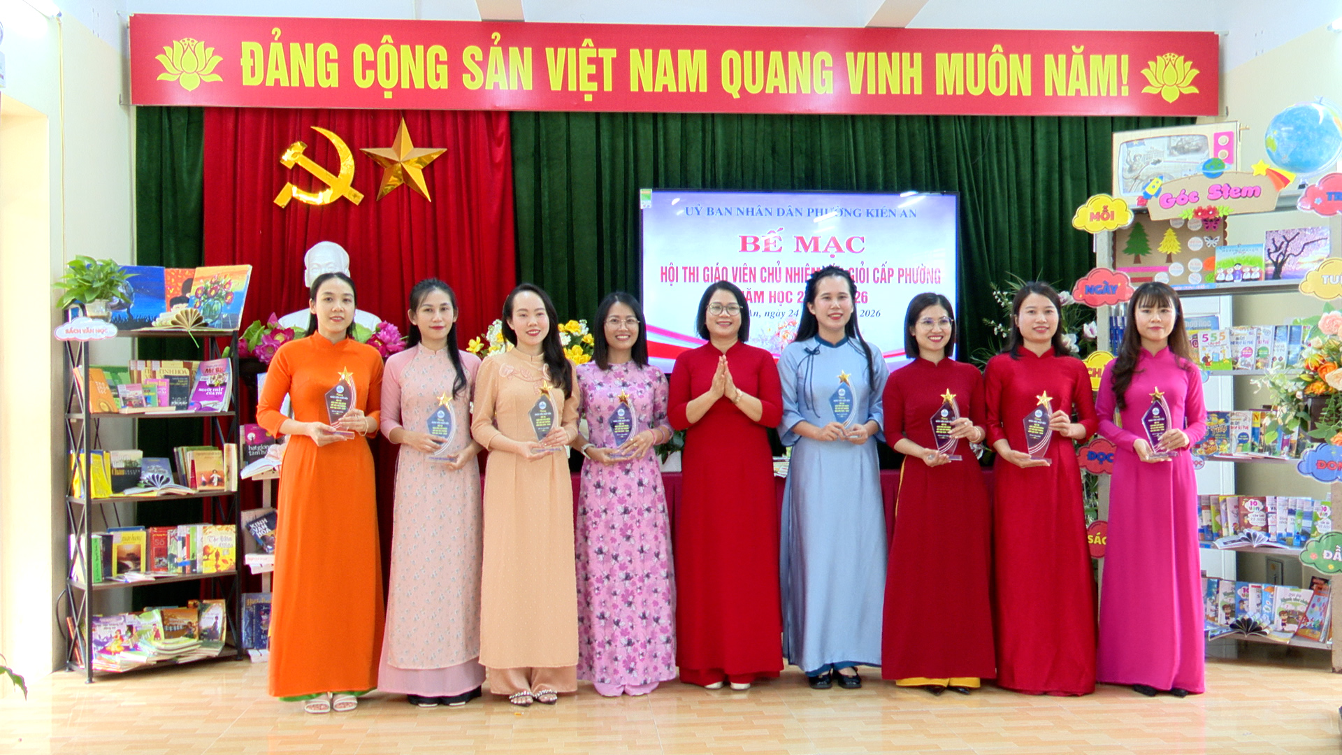 Kết thúc Hội thi, 28 giáo viên được công nhận giáo viên chủ nhiệm lớp giỏi Tiểu học cấp phường năm học 2025 - 2026. Ban tổ chức hội thi cũng đã vinh danh, trao kỷ niệm chương cho 08 giáo viên có thành tích xuất sắc trong hội thi.
