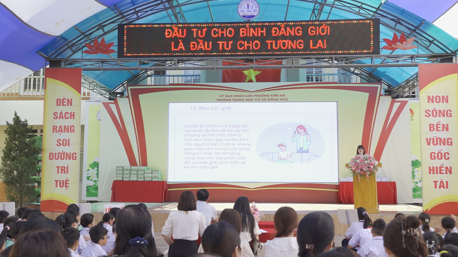 Sáng ngày 03/10/2025, tại trường THCS Đồng Hoà, Sở Nội vụ phối hợp UBND phường Kiến An tổ chức chương trình về bình đẳng giới và phòng chống bạo lực, xâm hại đối với phụ nữ, trẻ em. Tới dự có đại diện Sở Nội vụ, lãnh đạo Phòng Văn hoá – Xã hội phường, Ban Giám hiệu trường THCS Đồng Hoà.
