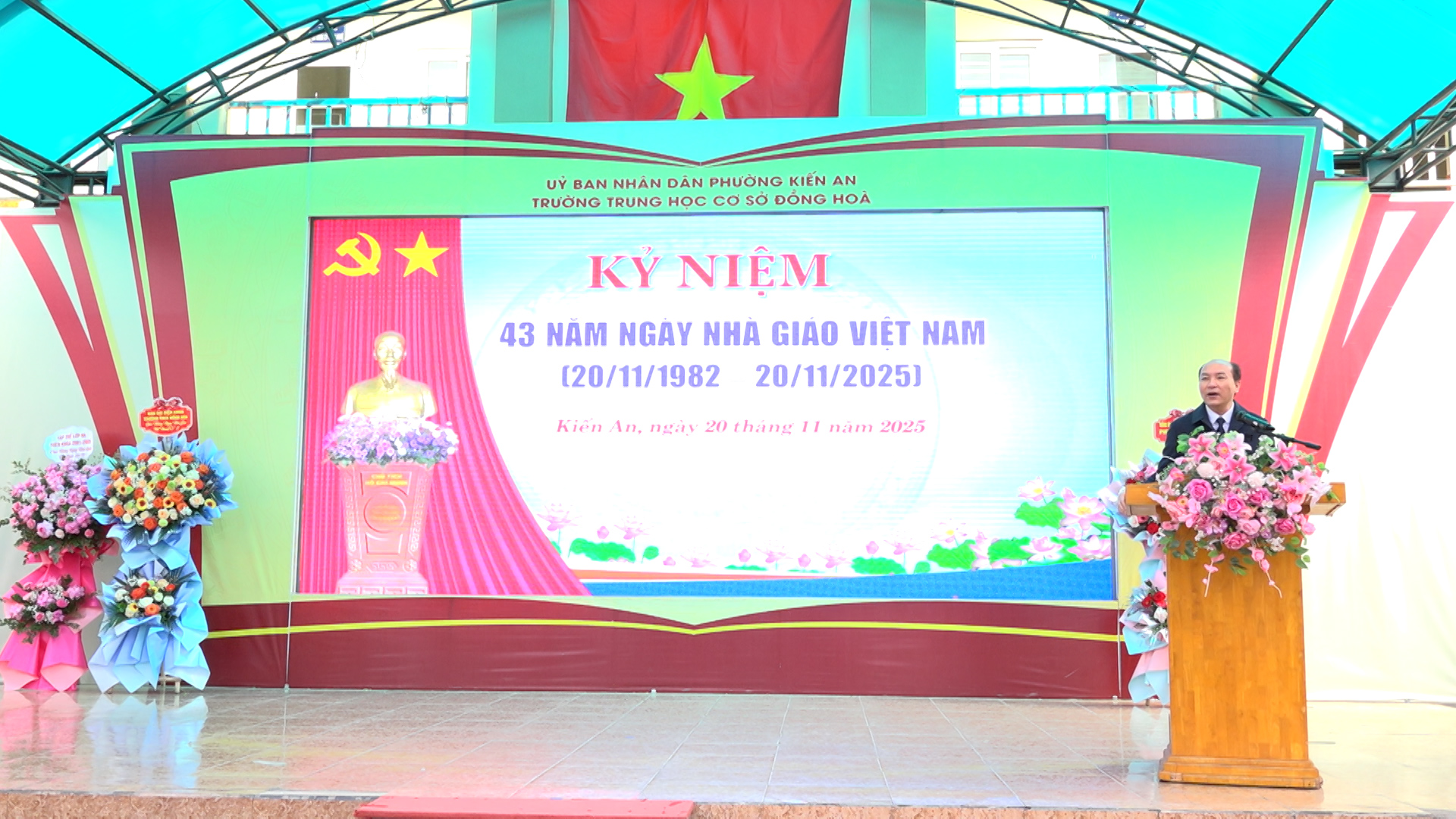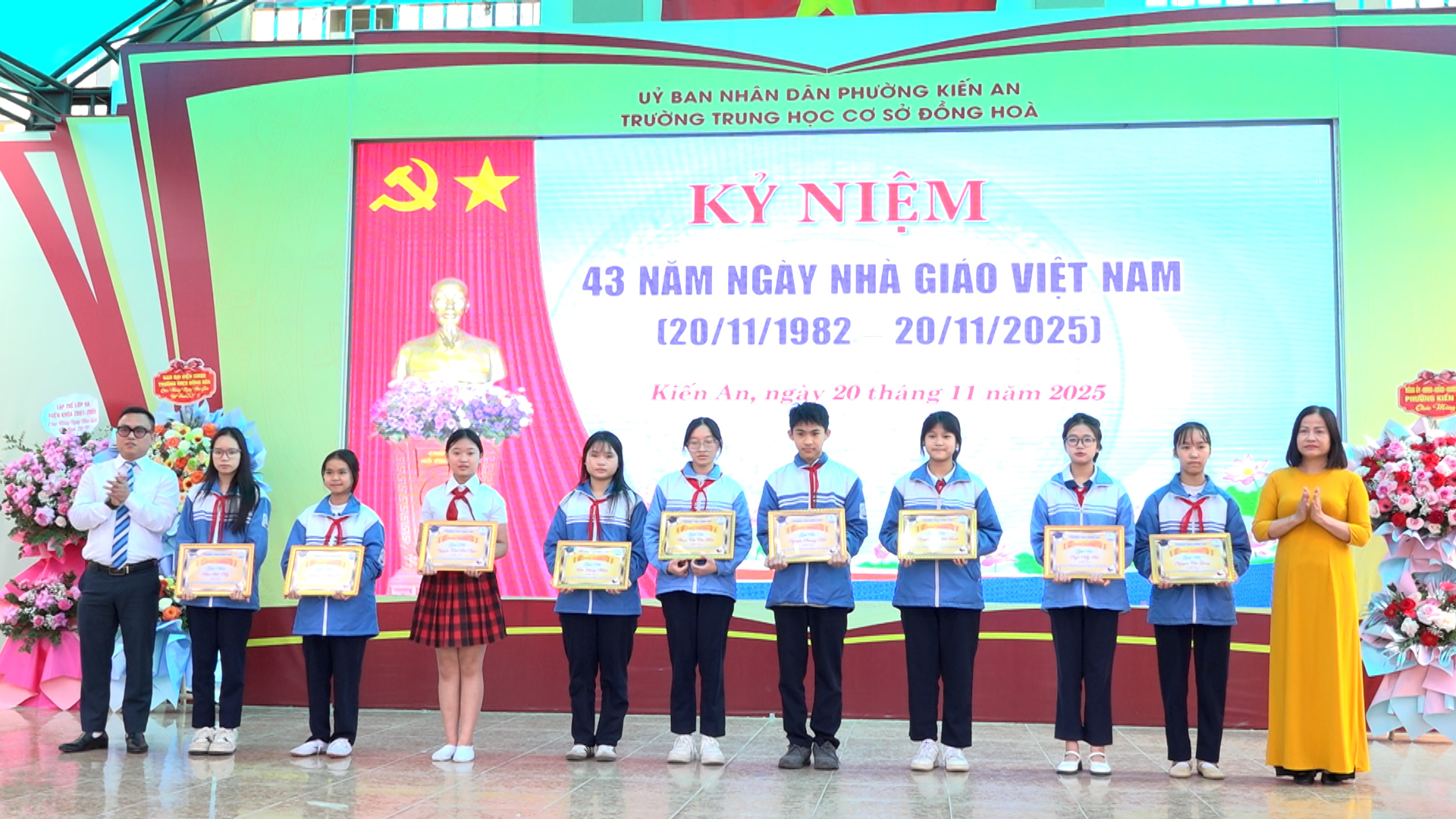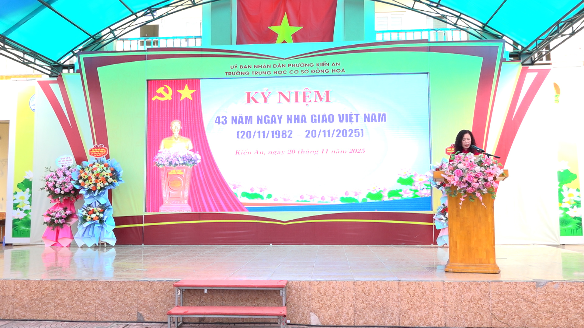 Sáng ngày 20/11, Trường THCS Đồng Hòa tổ chức kỷ niệm 43 năm ngày Nhà giáo Việt Nam (20/11/1982 - 20/11/2025). Tới dự có đồng chí Nguyễn Thiện Kim – Phó Bí thư Thường trực Đảng uỷ phường; đồng chí Nguyễn Tiến Thọ - Ủy viên Ban thường vụ Đảng ủy, Phó Chủ tịch Hội đồng nhân dân phường. Cùng dự có đại diện Phòng Văn hóa – Xã hội phường, các nhà giáo nguyên là cán bộ quản lý, giáo viên, nhân viên của nhà trường; Ban đại diện cha mẹ học sinh nhà trường.